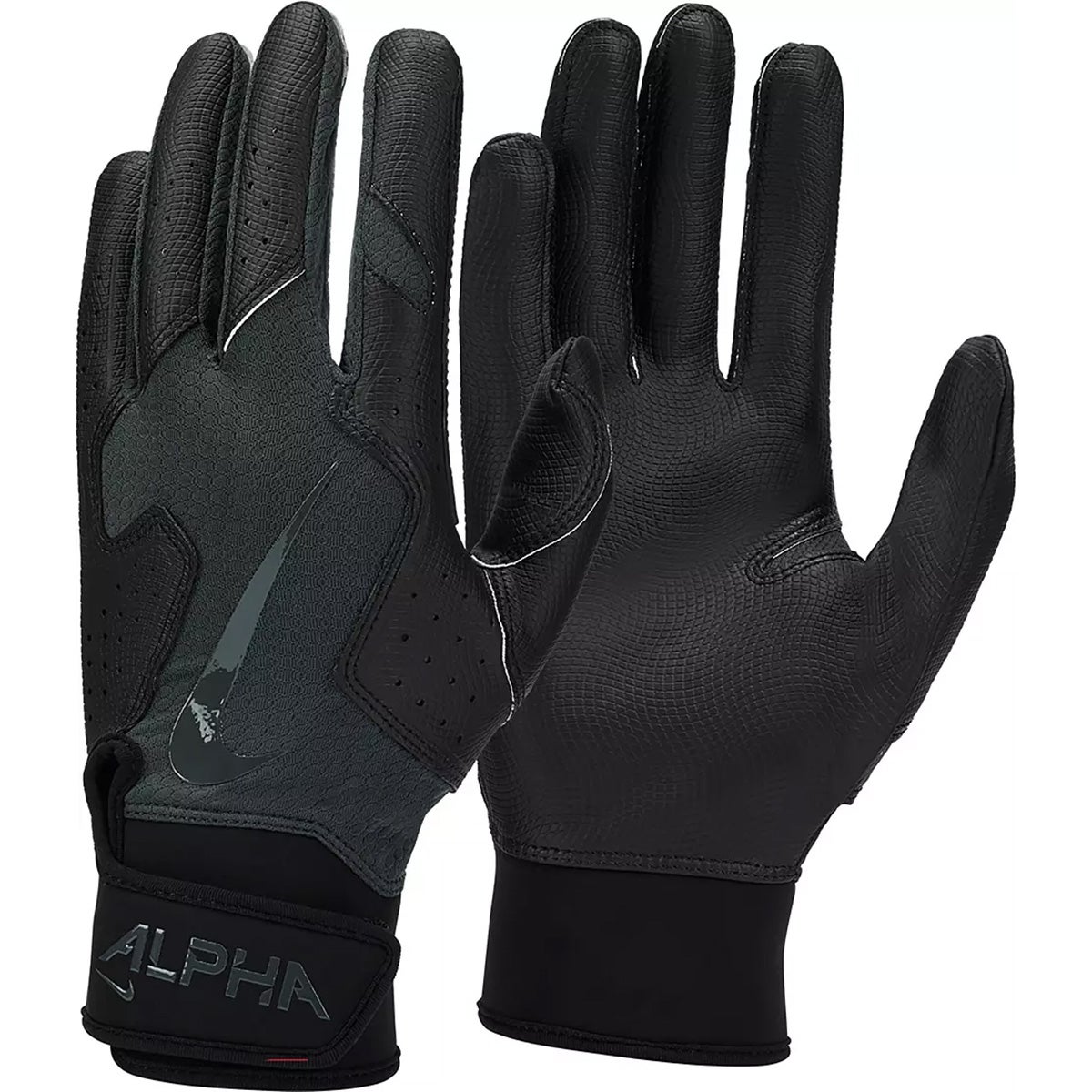 Keep a firm grip on the bat with the Nike Alpha 2.0 Batting Glove. The polyester blend provides a comfortable feel, while the textured palm offers a firm grip. Built-in Dri-FIT technology helps keepyour hand dry, and the neoprene cuff delivers a secure fit.
