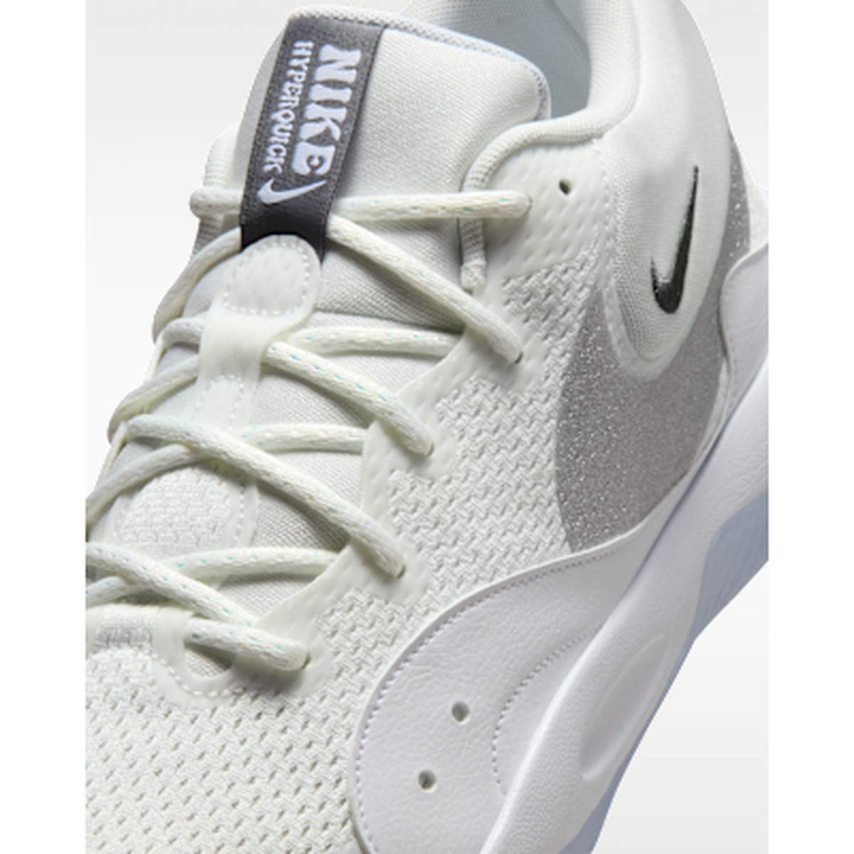Built for players who demand versatility on the court, the Nike Hyperquick SE delivers a winning combination of comfort, cushioning, and control from the first serve to the final point. Full-length foam runs the length of the shoe to provide responsive cushioning with every step, while a rubber outsole offers reliable traction on hardwood surfaces. A synthetic leather overlay reinforces durabilitywhere you need it most, and the innovative comfort collar blends the sleek feel of a low-top with the supportive structure of a mid. Crafted with recycled materials, this colorway brings a fresh pastel palette to keep you game-ready all club season long.