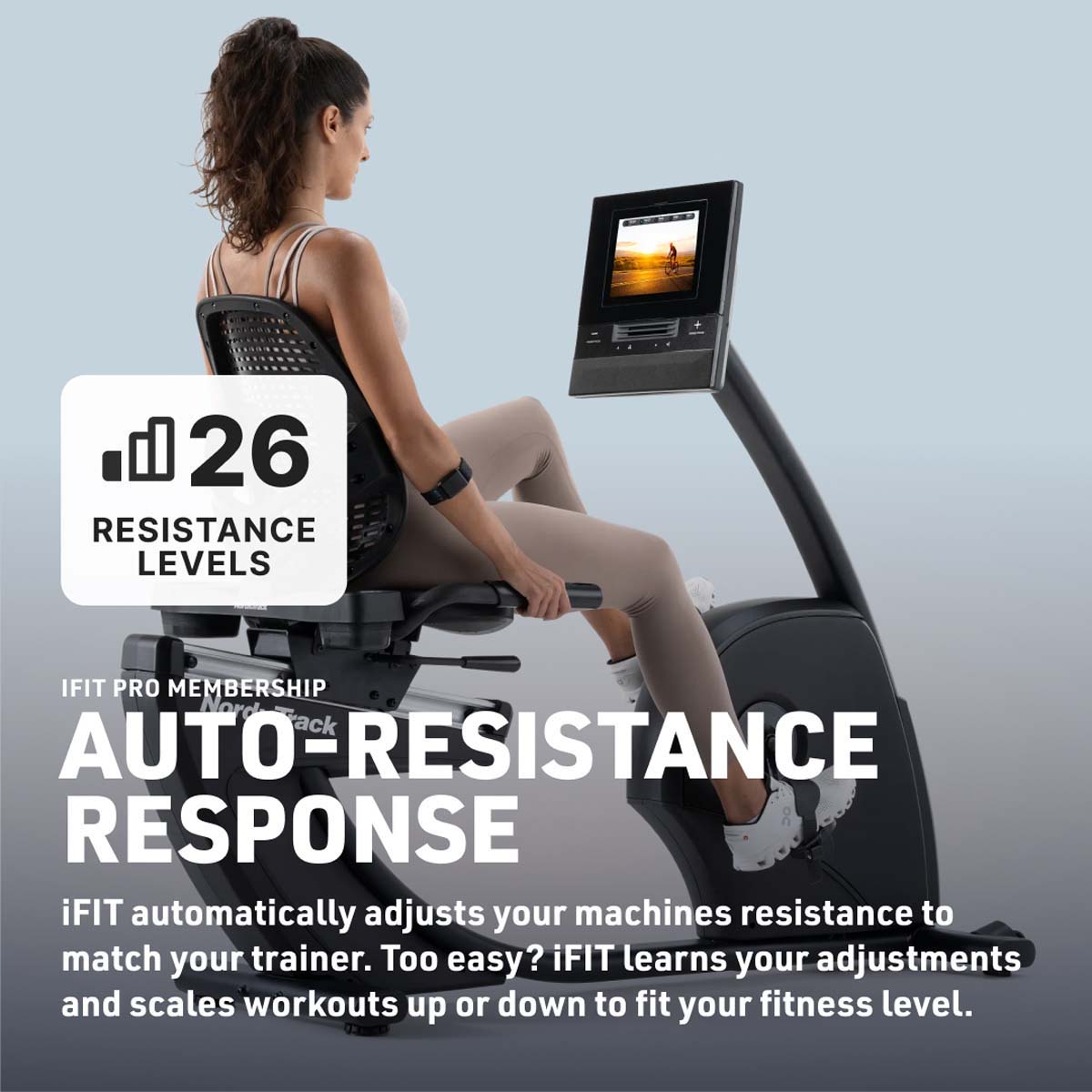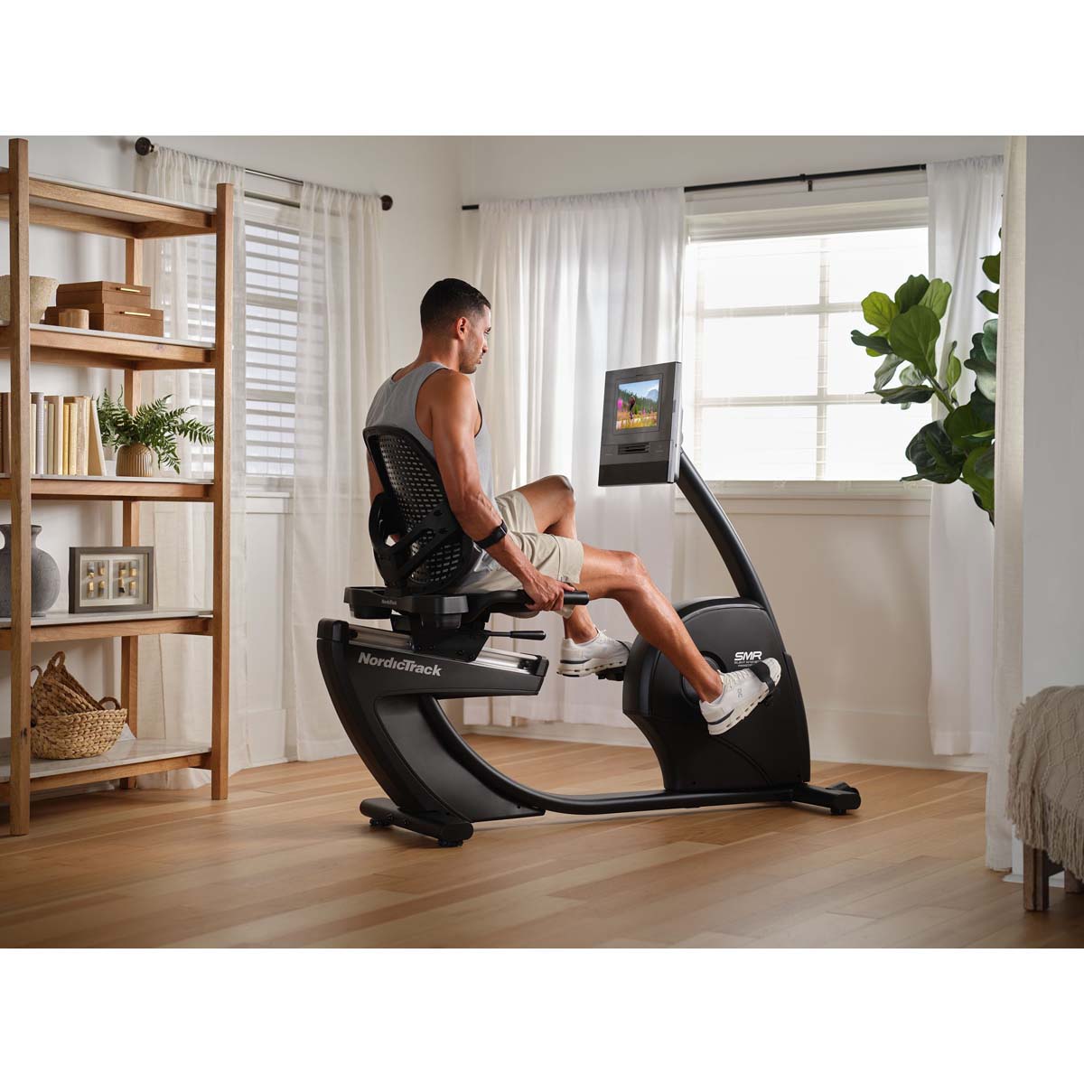 The NordicTrack 10 Recumbent Bike offers a comfortable seat and supportive backrest, making it a great option for those seeking extra comfort or when recovering from injury. This smart indoor exercisebike is designed for immersive, low-impact cardio workouts at home. With its step-through design, cushioned seat, and intuitive controls, this recumbent exercise bike is perfect for beginners and seasoned cyclists alike. The 10 Recumbent Bike is equipped with a 10 HD touchscreen for tracking workout stats and following on-screen workouts. Choose from 26 digital resistance levels to customize theintensity of your workout. Silent Magnetic Resistance ensures a smooth, quiet ride ideal for any home gym setup. Stay cool with the AutoBreeze fan and charge your devices with the built-in USB-C port during longer sessions. Whether you re training for endurance, weight loss, or recovery, the 10 Recumbent Bike will help you meet your fitness goals. About iFIT: iFIT offers over 10,000 workouts led by professional athletes and fitness experts. With the iFIT Pro Membership*, you can access a wide range of training programs, including strength, yoga, scenic tours and more. iFIT's SmartAdjust technology personalizes each workout to your fitness level. The iFIT platform also integrates with popular fitness apps like Strava, Garmin Connect, and Apple Health, allowing you to track your progress seamlessly.