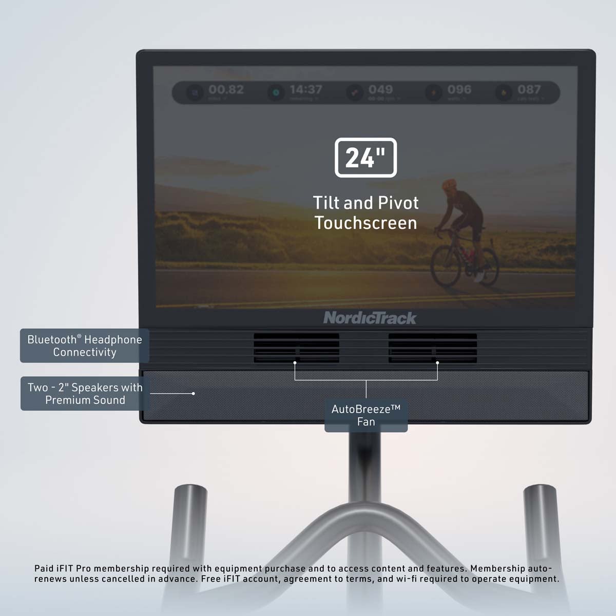 - Pivot the 24"" touchscreen and follow iFIT Trainers in workouts like strength and yoga. (Pro Membership Required)
