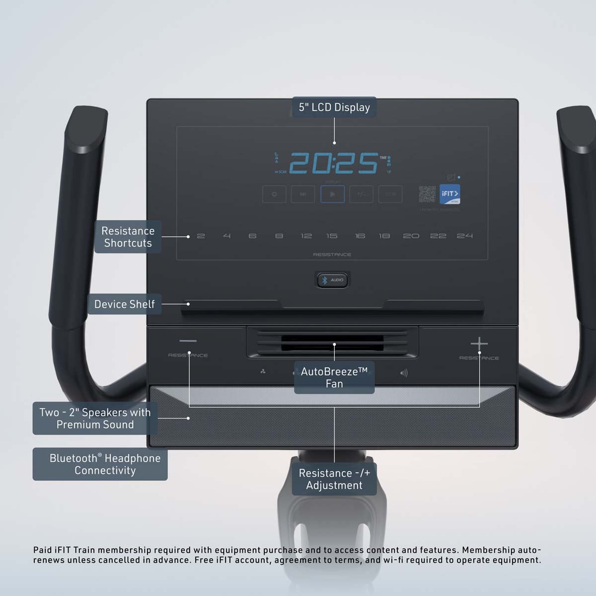 - See your live workout stats on the clear 5 LCD display or use your own device to follow iFIT trainers and automatically control your bike all from your phone or tablet. (1-month iFIT Train MembershipErgonomic Pedals with straps keep you connected and comfortable.