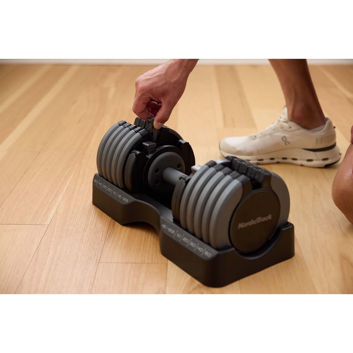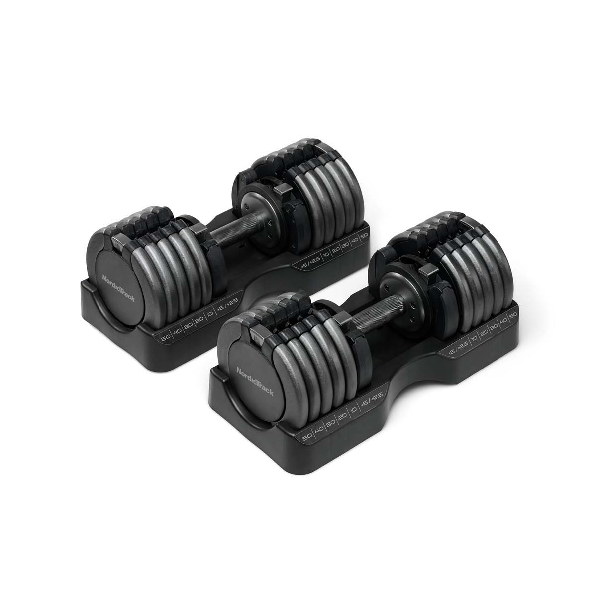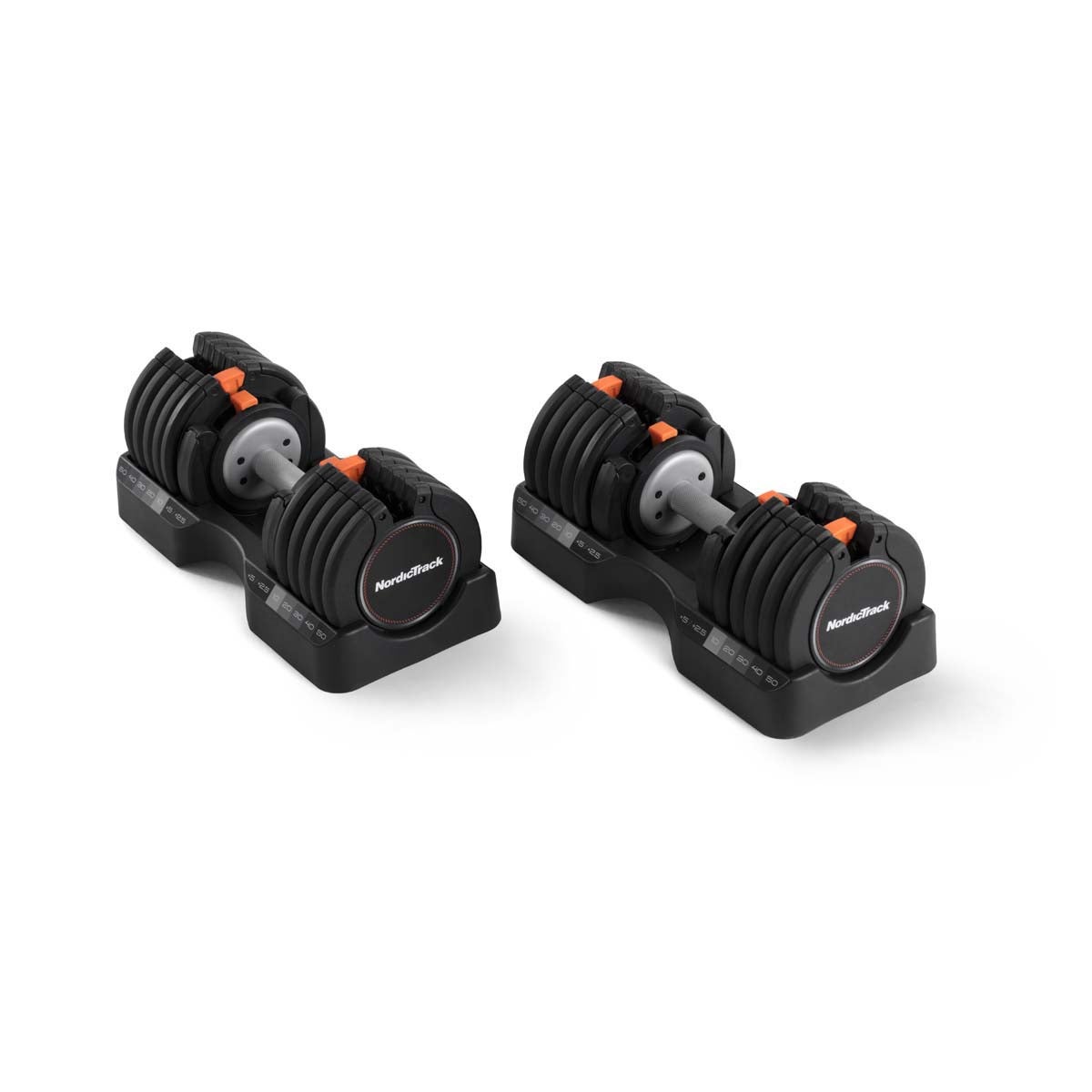 About the 55 lb Select A Weight Dumbbells: Maximize your workouts without crowding your space with the NordicTrack Adjustable Dumbbell Set. Each dumbbell offers 15 weight options, giving you the