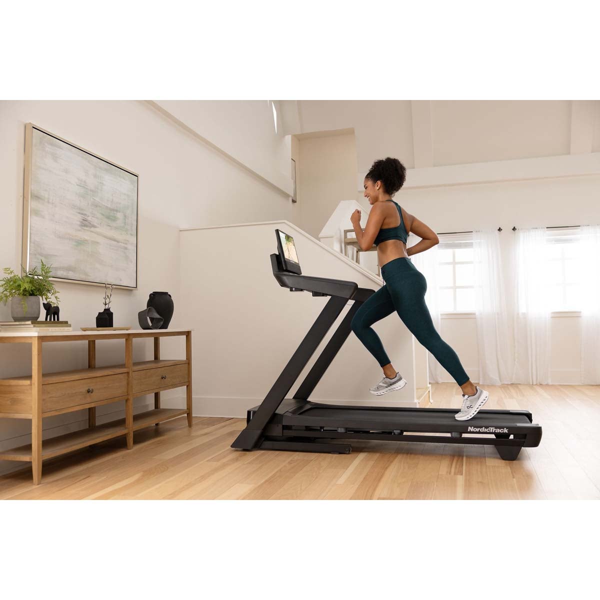 The T Series 16 is equipped with a tilting 16"" touchscreen to keep the optimal viewing angle for your height. The 0-12% incline can gradually slope, stimulating hill terrain and making your workout more intense and effective. A speed range of 0-12 MPH allows you to run up to a 5-mile-minute pace. The SelectFlex cushioned deck offers customizable impact control; choose soft for low-impact walking or firm for more realistic road running. While you work out, the built-in AutoBreeze fan keeps you cool and automatically adjusts based on the intensity of your workout. A USB-C port ensures your devices stay charged during workouts. The T Series 16 Treadmill delivers a premium NordicTrack experience in a space-saving footprint. This treadmill also features EasyLift Assist, allowing you to fold it up effortlessly and reclaim your space when not in use. About iFIT: iFIT offers over 10,000 workouts led by professional athletes and fitness experts. With the iFIT Pro Membership*, you can access a wide range of training programs, including strength, yoga, HIIT, and more. iFIT's SmartAdjust technology personalizes each workout to your fitness level, and ActivePulse adjusts workout intensity based on your heart rate, ensuring optimal training. The iFIT platform also integrates with popular fitness apps like Strava, Garmin Connect, and Apple Health, allowing you to track your progress seamlessly.