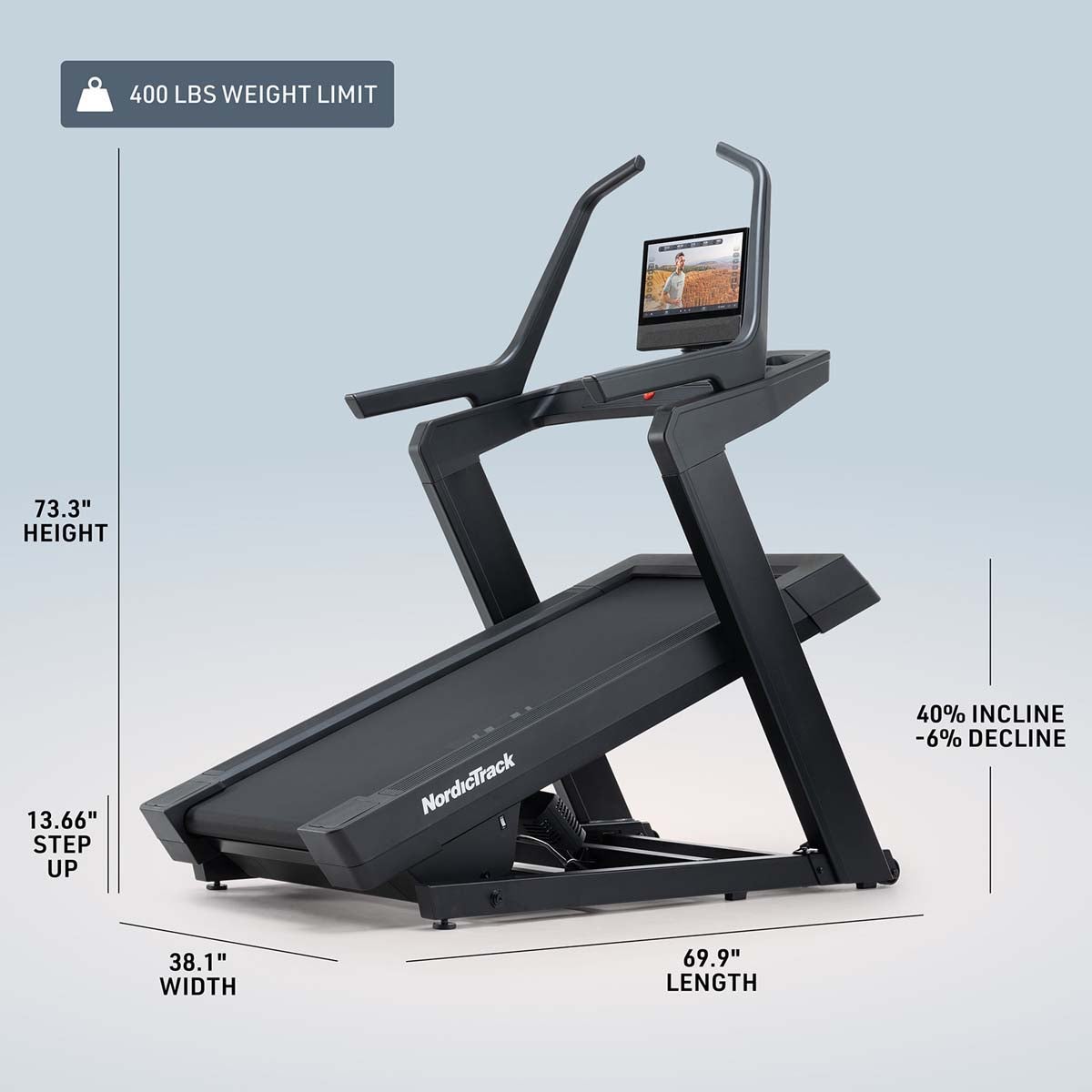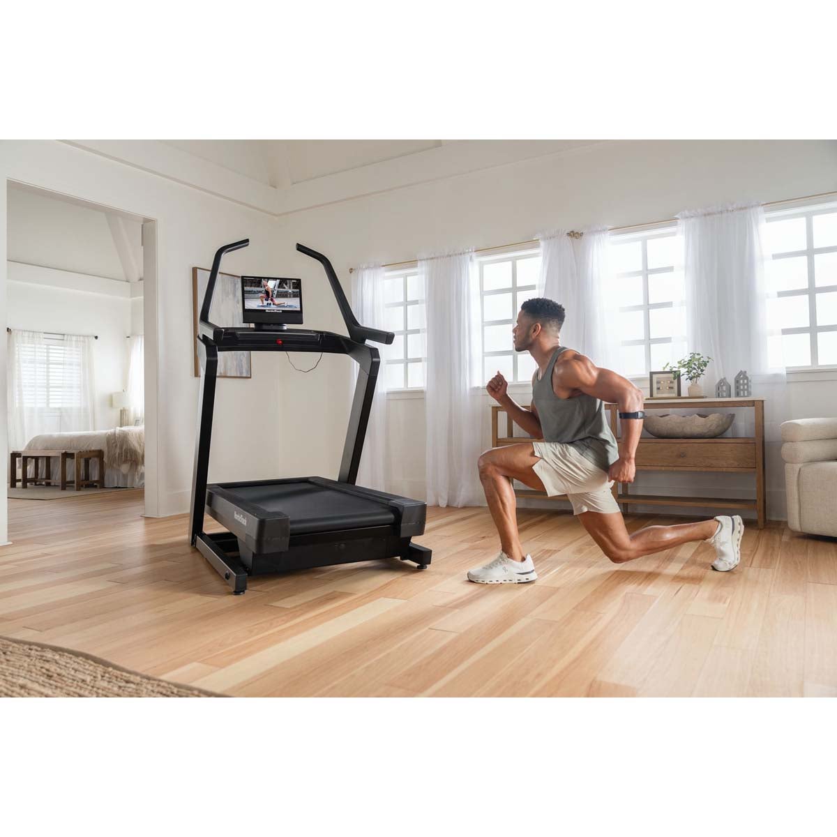 Condition for the climb ahead with the X16 Incline Treadmill. Train smarter and more efficiently across a wide spectrum of intensities with the industry s most versatile incline range. With a 40% incline to -6% decline range, it replicates challenging hills and varied terrain for immersive, full-body training. High-incline walking raises your heart rate without the stress of running, perfect for active recovery. Downhill walking or running strengthens and stabilizes the quads and calves by emphasizing eccentric movement. The 16 HD touchscreen pivots for optimal viewing, whether you re runningor following off-treadmill workouts. A speed range of 0-12 MPH allows you to run up to a 5-minute-mile pace. The SpringFlex cushioned deck absorbs impact, supports dynamic movement like hiking, running, walking backwards, lateral shuffles, and even skipping turning the X16 into a full-body, multi-directional training platform. While you work out, the built-in AutoBreeze fan keeps you cool andadjusts based on the intensity of your workout. A USB-C port ensures your devices stay charged during workouts. About iFIT: iFIT offers over 10,000 workouts led by professional athletes and fitness