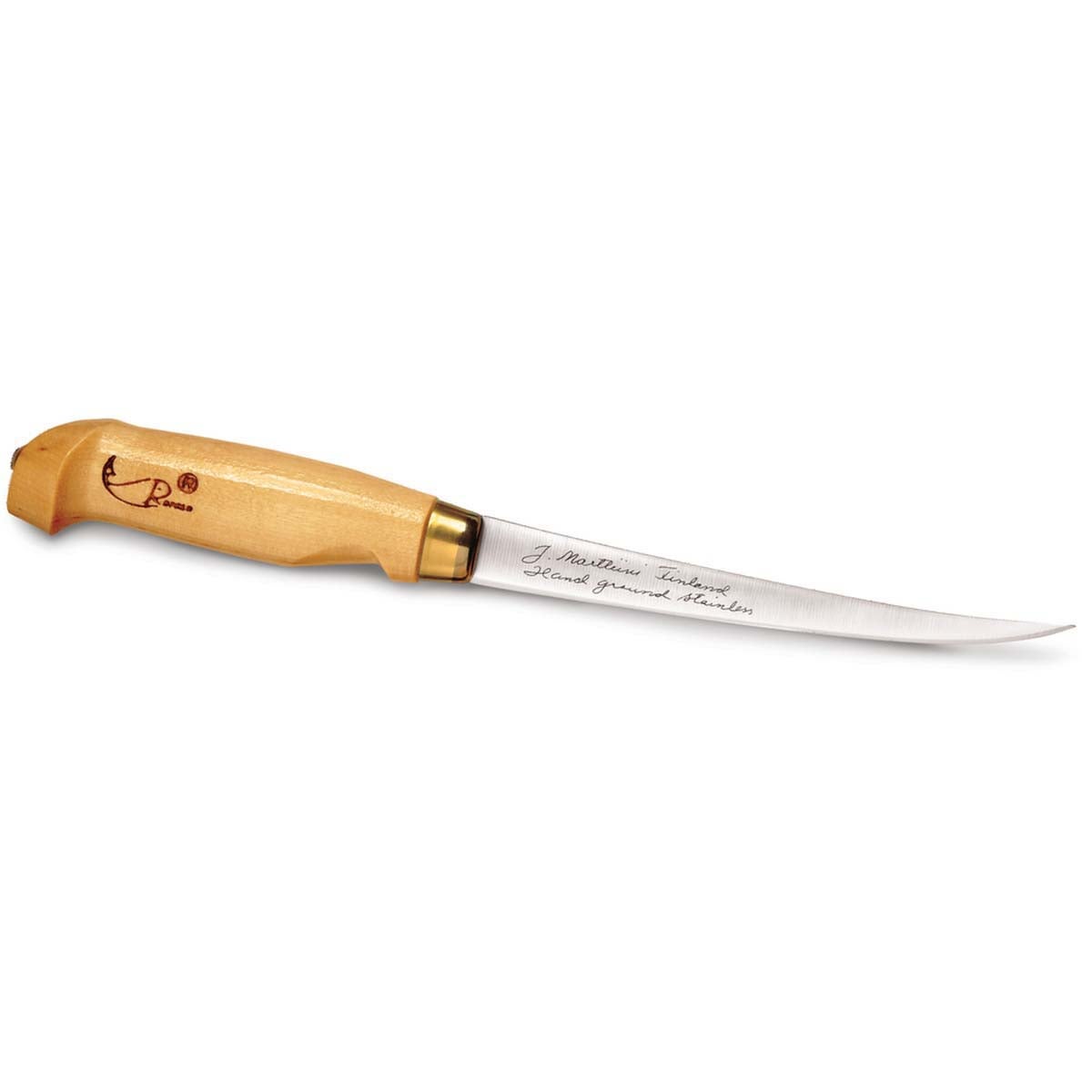 A true classic in fish-cleaning gear, the Fish 'n Fillet knife is built for smooth, precise cuts from first slice to final trim. The flexible, progressively tapered blade helps you follow bones and skin with control, while the traditional birch handle offers a comfortable, secure grip. Finished with a tooled leather sheath for carry and protection, it also comes with a simple sharpener to keep the edge ready for the next fillet session.