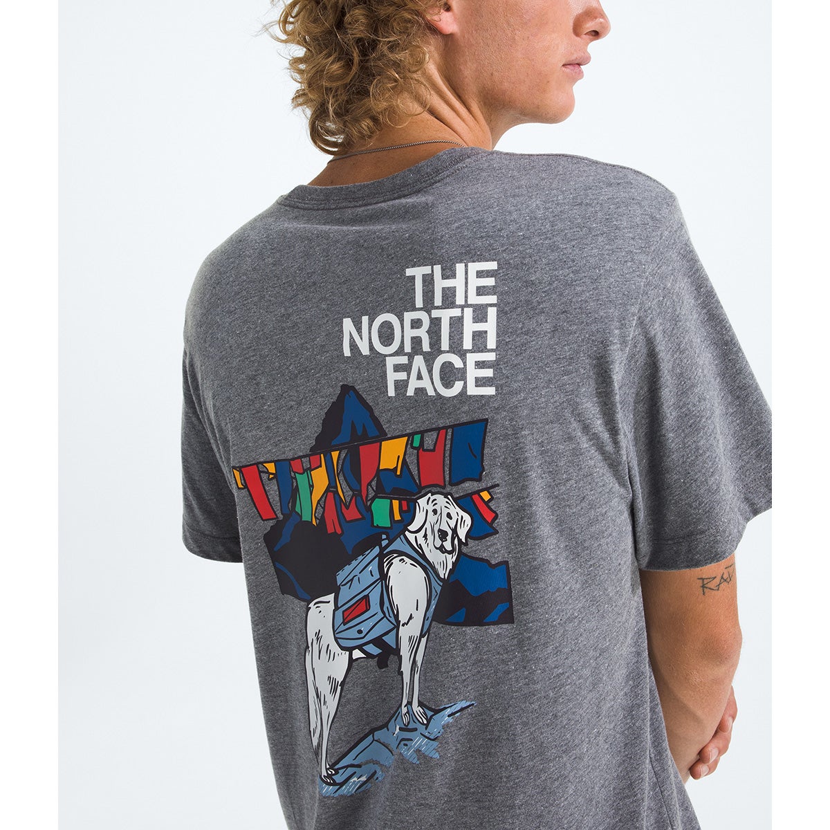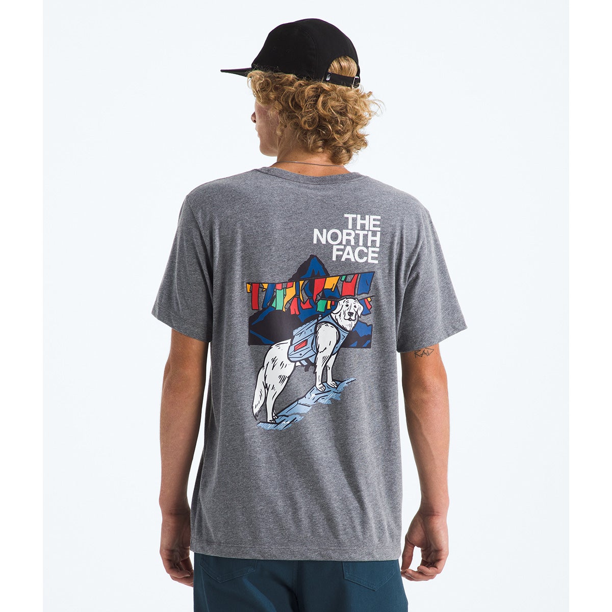 - "The North Face" logo and a dog graphic on the back