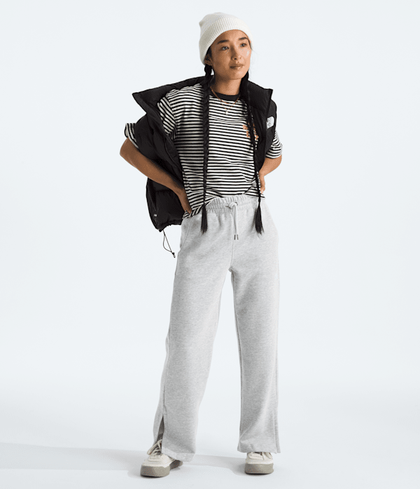 The Women's Evolution Pant by The North Face combines comfort and style with a slim-fit design and sustainable materials. Crafted with Climate Conscious Cotton and recycled polyester, these pants are