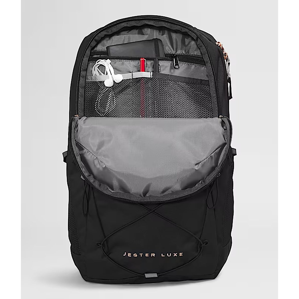 - The Luxe edition features a premium metallic embroidered logo and metallic zipper pulls