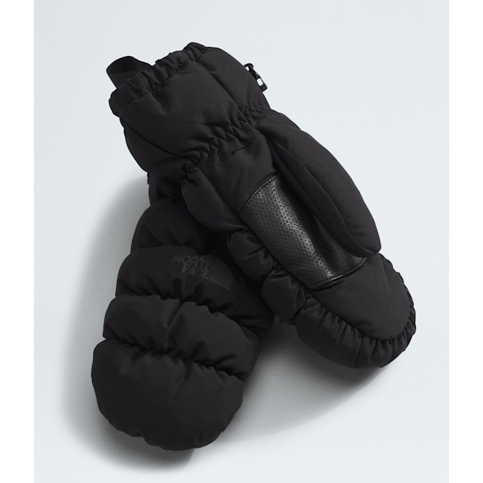 - lation and puffer quilting lock in heat. A perforated leather palm adds durability and grip, and an elastic cuff with wrist leash keeps them secure. Finished with a non-PFC DWR treatment for added water repellency.