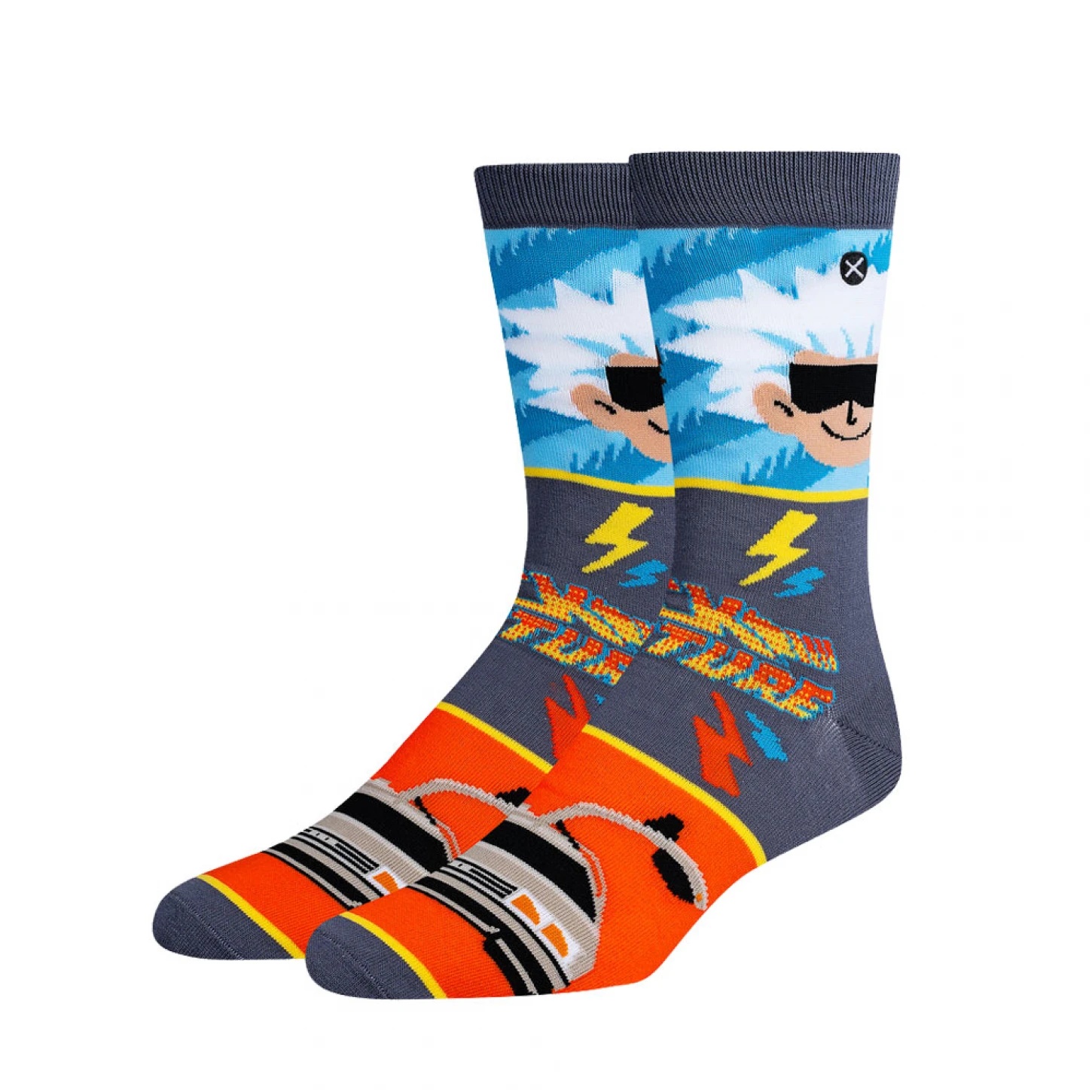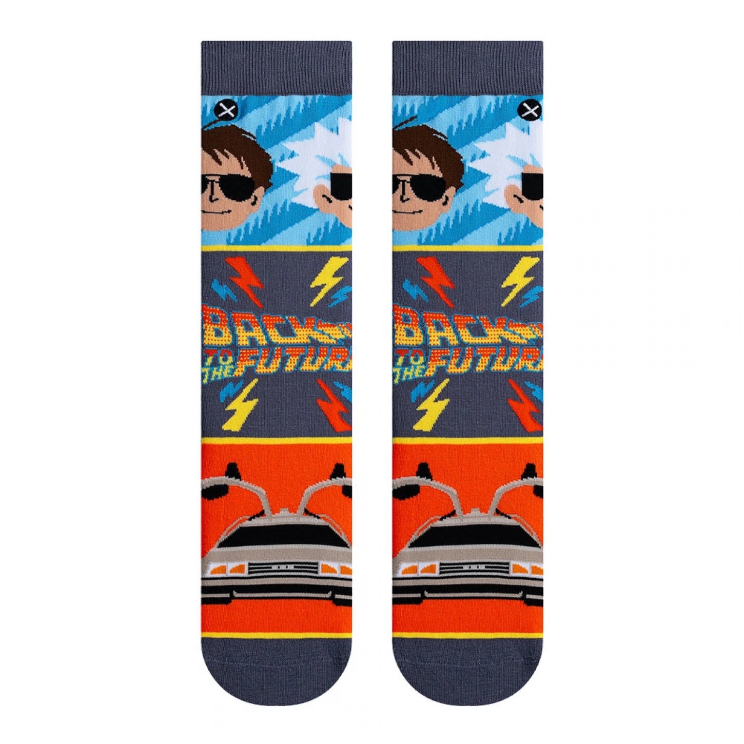 Turn up the nostalgia with these vibrant crew socks featuring an allover Back to the Future mash?up graphic. Soft, breathable knit keeps feet comfortable for everyday wear while a supportive crew heig