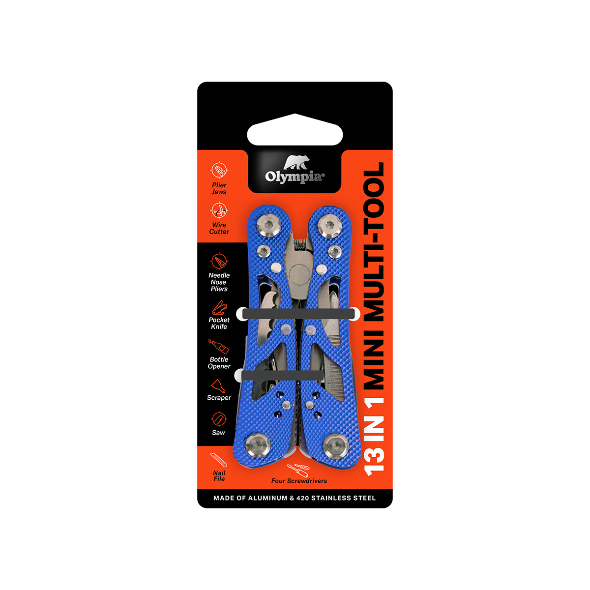 Be ready for anything with the Olympia 13-in-1 Multi Tool, a compact all-in-one solution for everyday tasks and outdoor adventures. Built with durable stainless steel and a foldable design, it packs multiple essential tools into one easy-to-carry unit?perfect for camping, hiking, or quick fixes on the go.