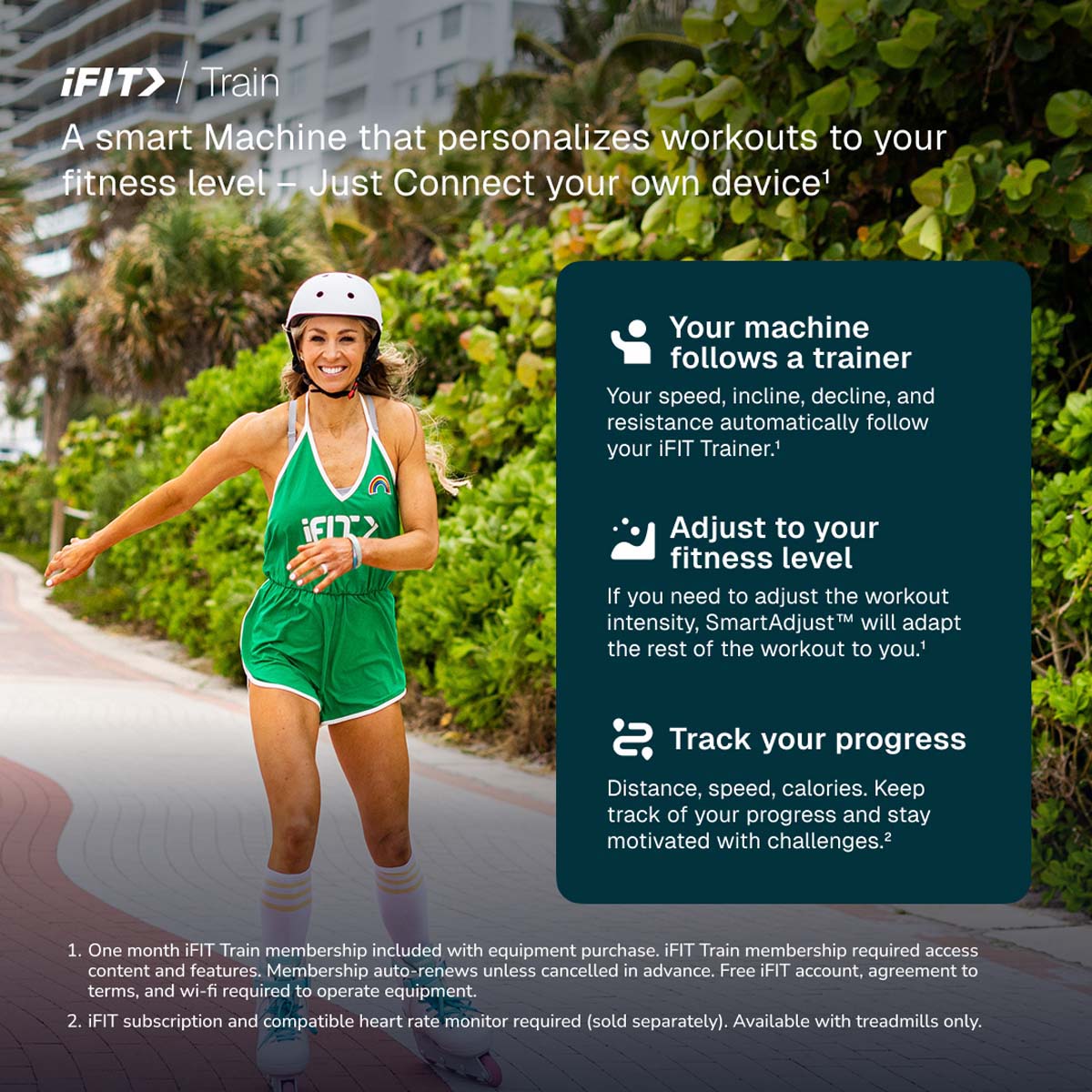 - With the included 1-month iFIT Train Membership*, follow iFIT Trainers in over 10,000+ smart workouts personalized to your fitness level.