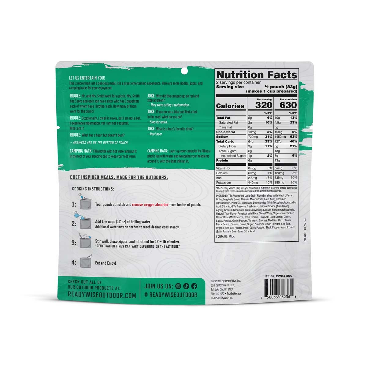 Each pouch of our Wild Rice Rissoto contains 2 servings and is resealable. These pouches are lightweight making them easily portable on any outdoor adventure. Just eat directly from the pouch!
