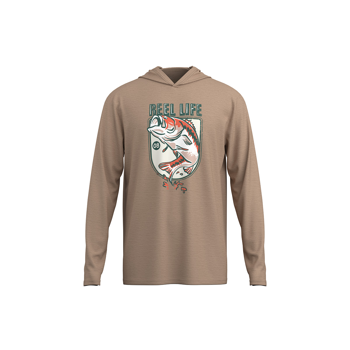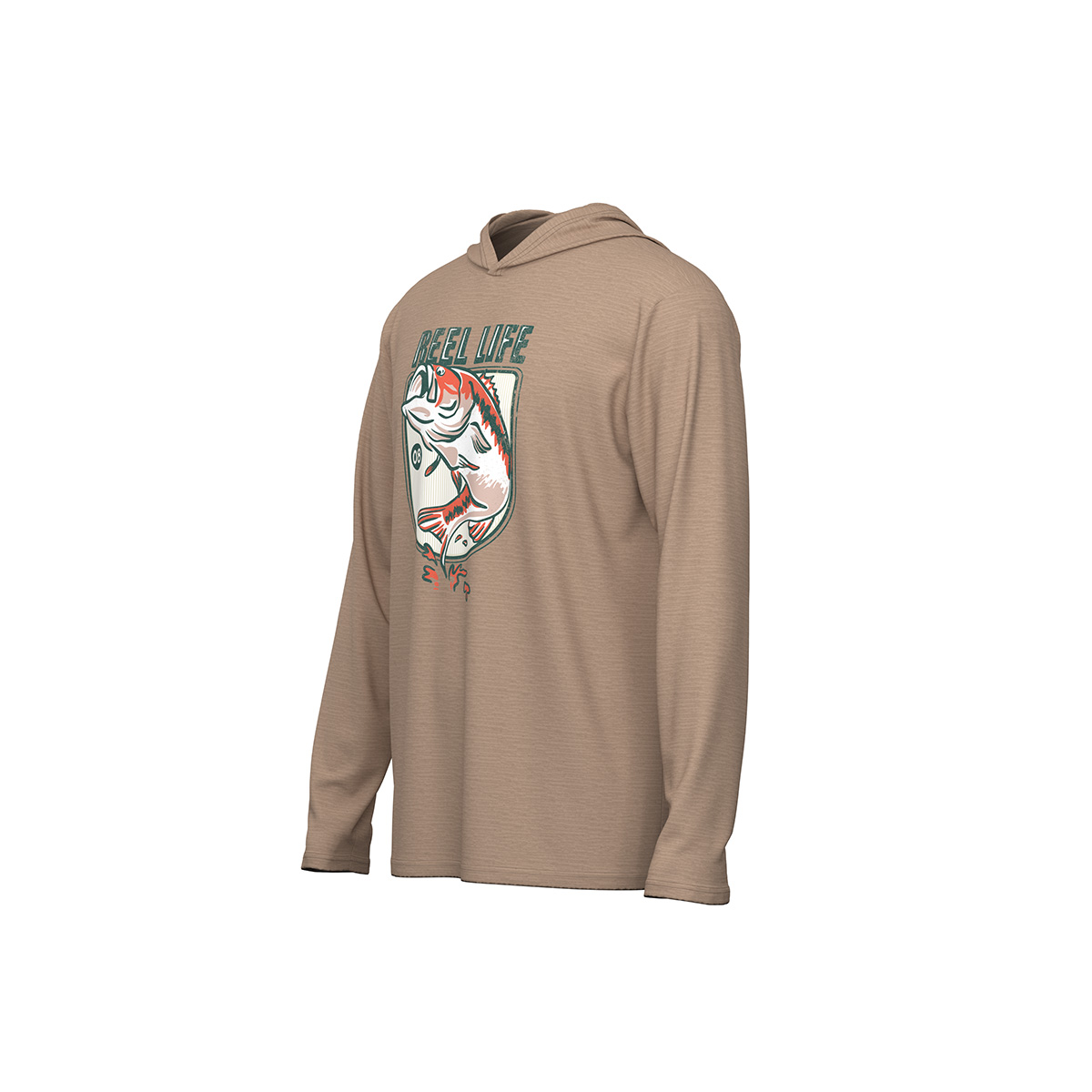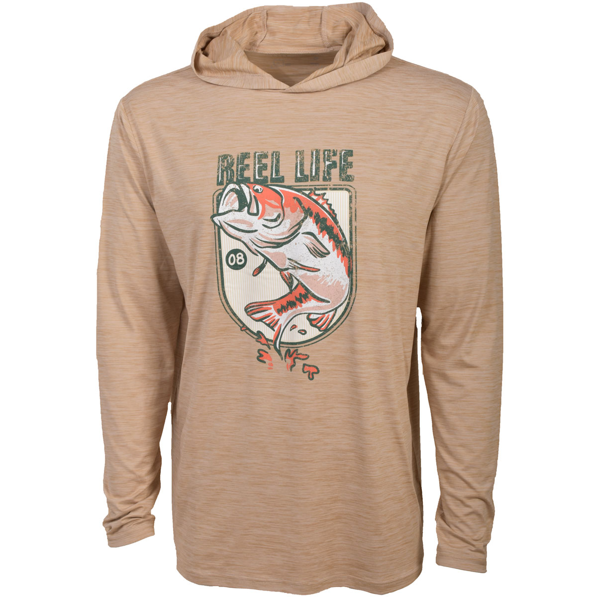 Reel Life Men's Heather UV Hooded Long Sleeve Shirt - Vintage Bass Badge