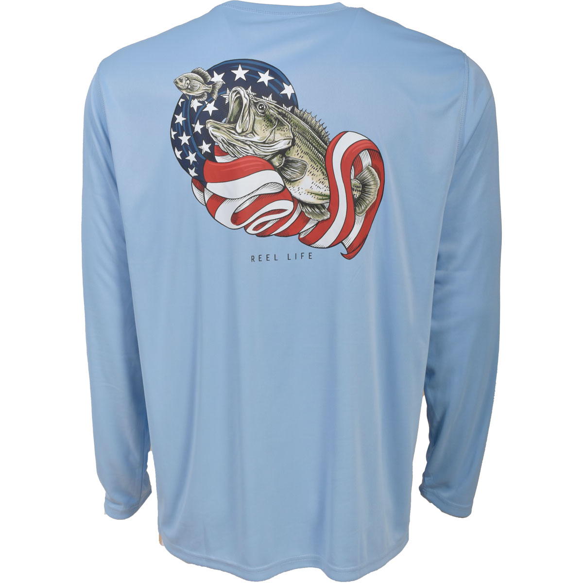 Reel Life Men's Performance Long Sleeve UV Shirt - Patriotic Bass Graphic