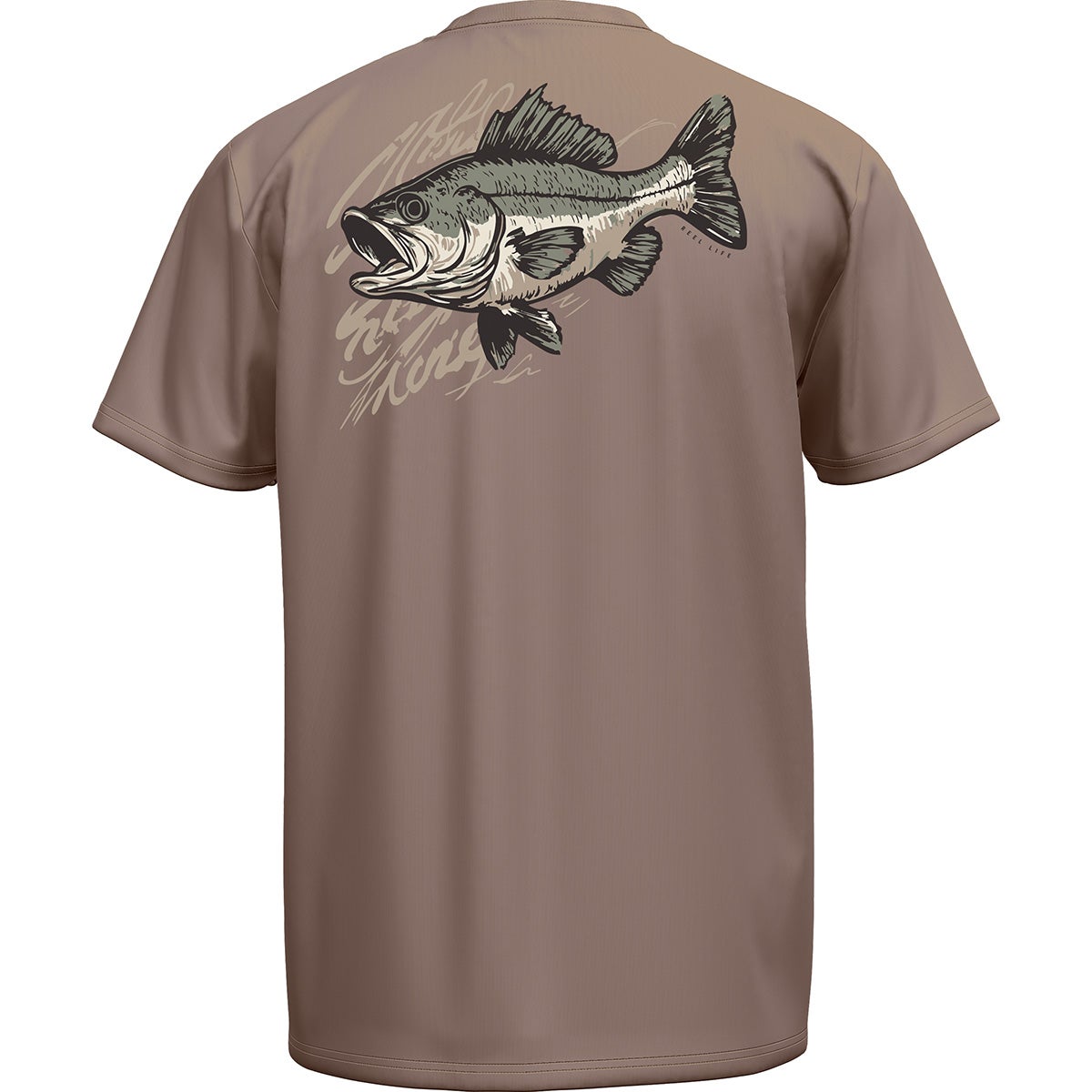 - Clean "Reel Life" front logo with bold bass graphic on the back