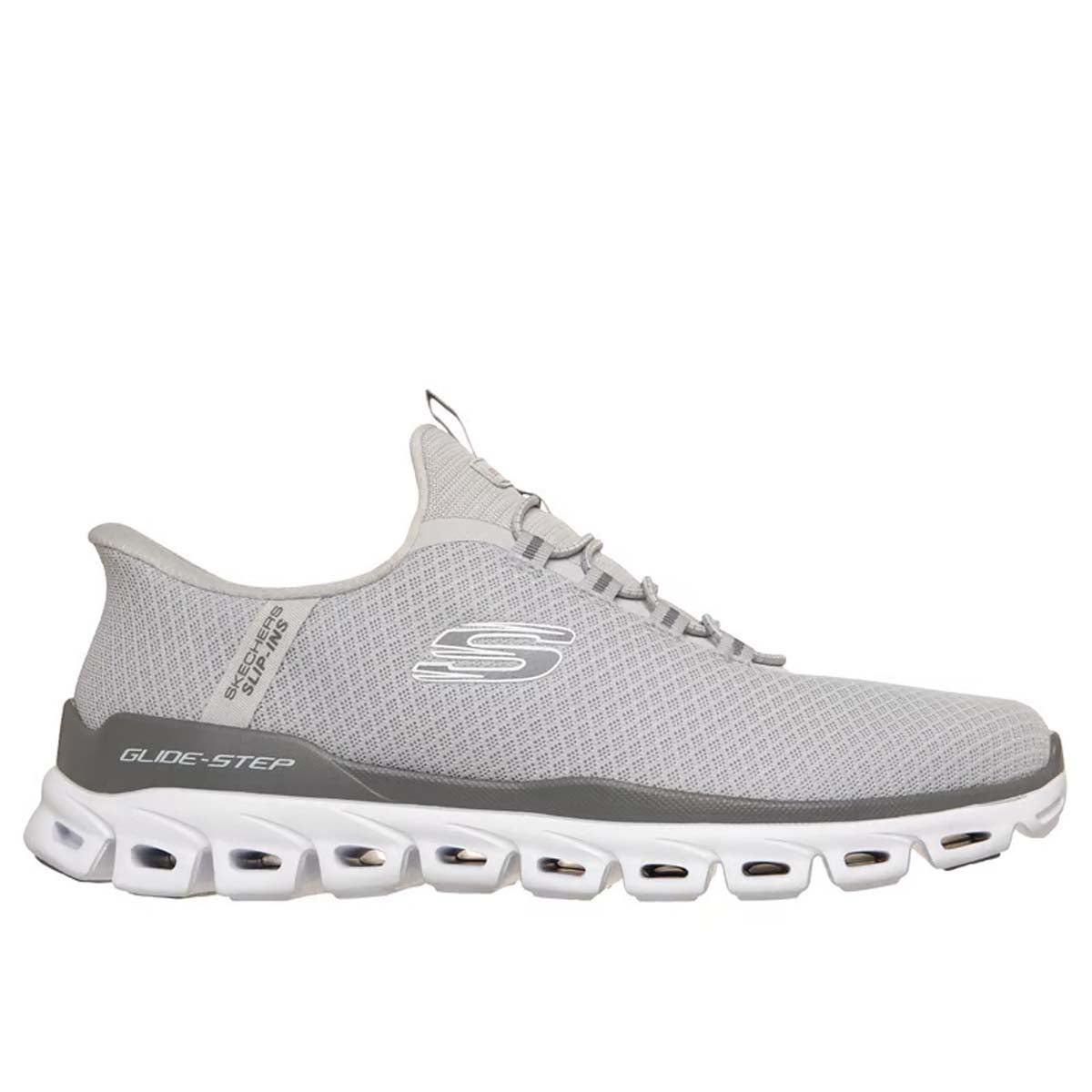 stretch-laced front, Skechers Air-Cooled Memory Foam® insole, and a Glide-Step® midsole.