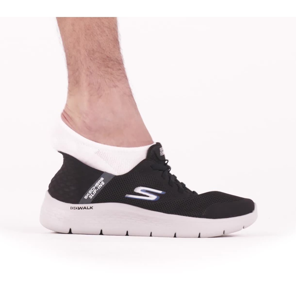 Step into easygoing comfort with the Skechers Slip-ins GO WALK Flex Hands Up, built for everyday wear and light training. The stretch-laced design pairs a breathable mesh upper with durable syntheticoverlays for a supportive fit. Underfoot, a cushioned midsole keeps the ride light and smooth from errands to longer walks. Finished in a versatile black and gray look that pairs easily with your daily rotation.
