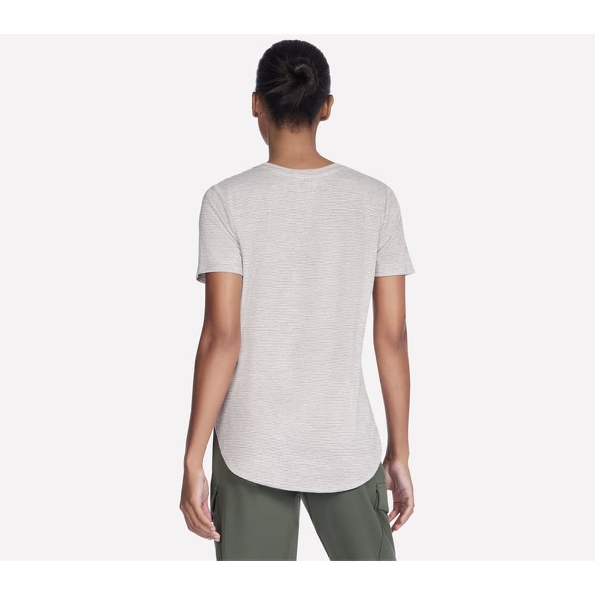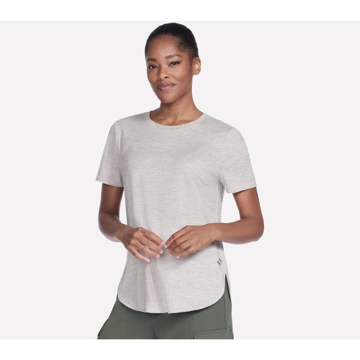 Refresh your training rotation with a striped tunic tee designed for easy movement and everyday comfort. The lightweight, brushed-back feel keeps it soft against your skin while you stay active. A longer tunic length and curved hem offer flattering coverage for workouts, travel, and off-duty days.