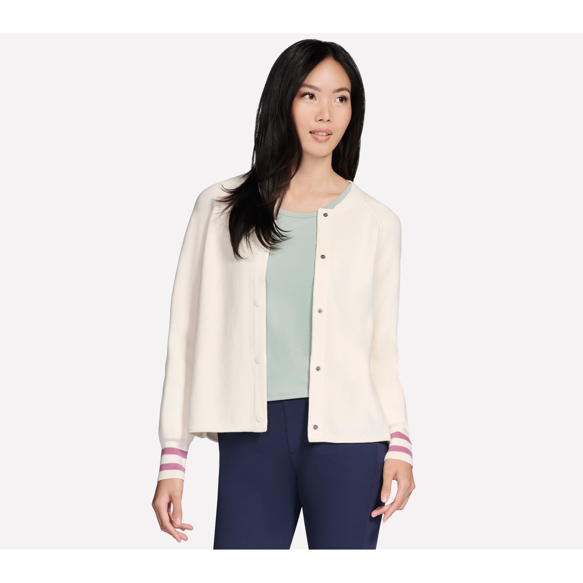Play it cool in ultra-classic warmth with this varsity-inspired bomber from the GO WALK Reflection collection. The textured SKECH-KNITS Sweater knit delivers a cozy feel with a clean, easy-to-layer silhouette. Finished with sporty ribbed trim and a snap-front closure for effortless on and off.