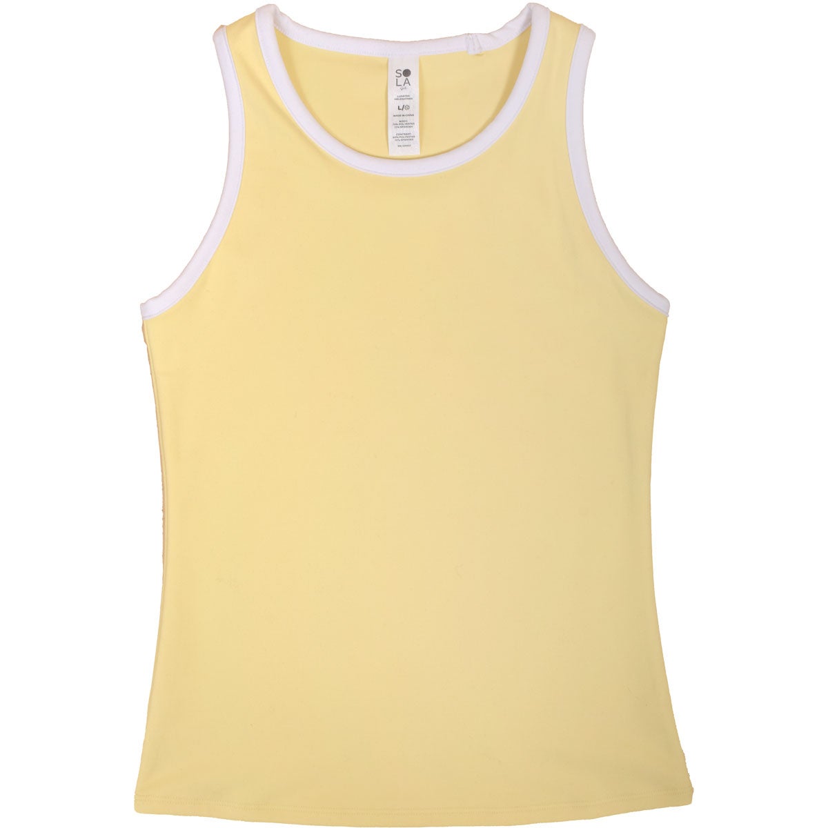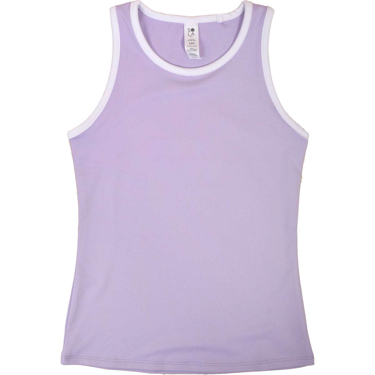 The SOLA Girls' Double Jersey Helena Tank is designed for confident movement and all-day comfort. Featuring sporty contrast binding and a built-in shelf bra, this tank offers light support with a sleek, athletic look. The soft double-jersey fabric feels smooth against the skin, making it perfect for practice, play, or everyday wear.