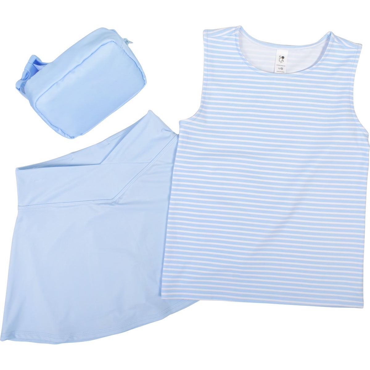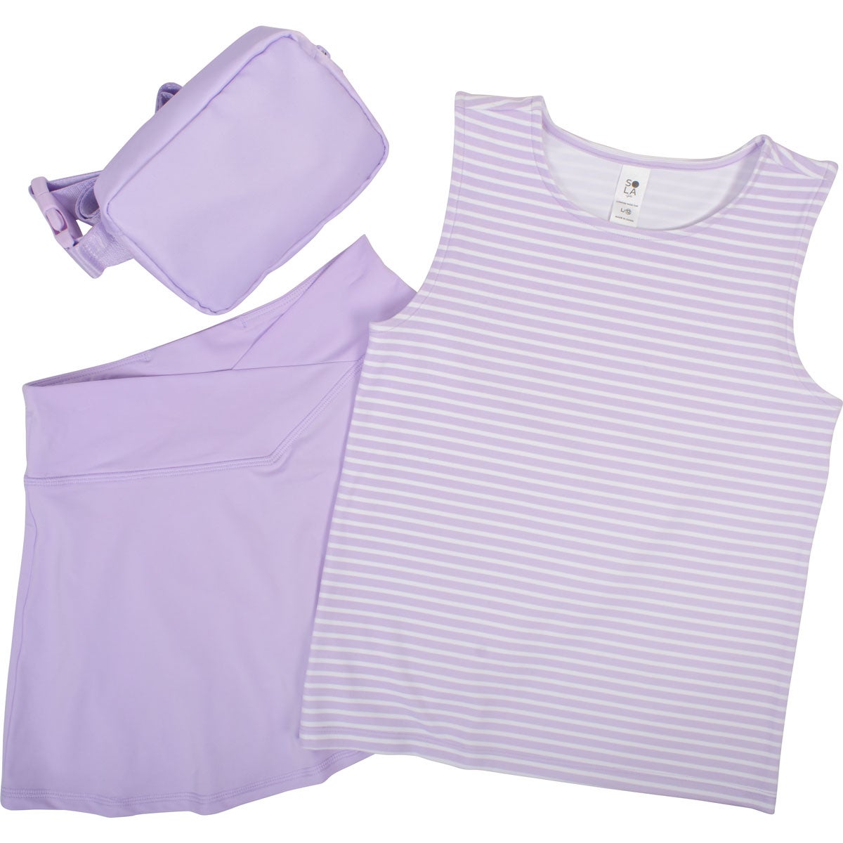 The SOLA Girls' Muscle Tank & Skort Set with Fanny Pack delivers an easy, on-trend look designed formovement and everyday wear. This coordinated set features a fitted meet & greet muscle tank paired with a woven hybrid skort finished with a flattering crossover waistband. A matching fanny pack completes the set, adding hands-free convenience and sporty style for active days, outings, or casual plaay.