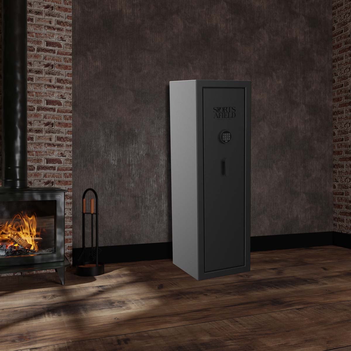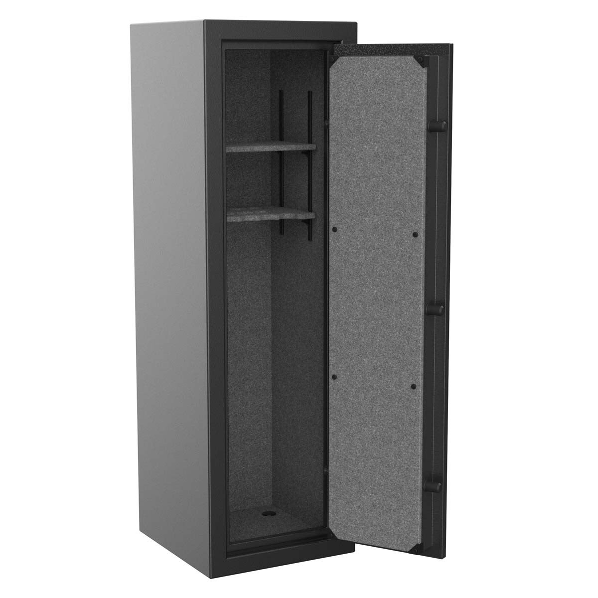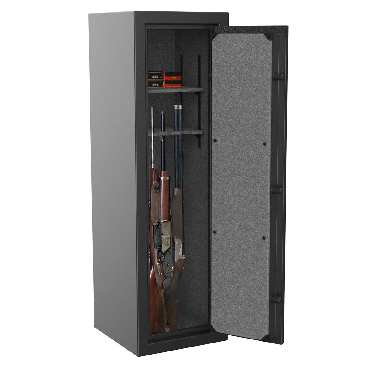- Fully carpeted interior with height-adjustable/removable top shelf and barrel rests