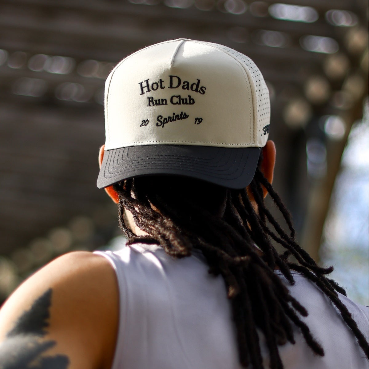 - Structured VP hat with embroidered ""Hot Dads Run Club"" front graphic