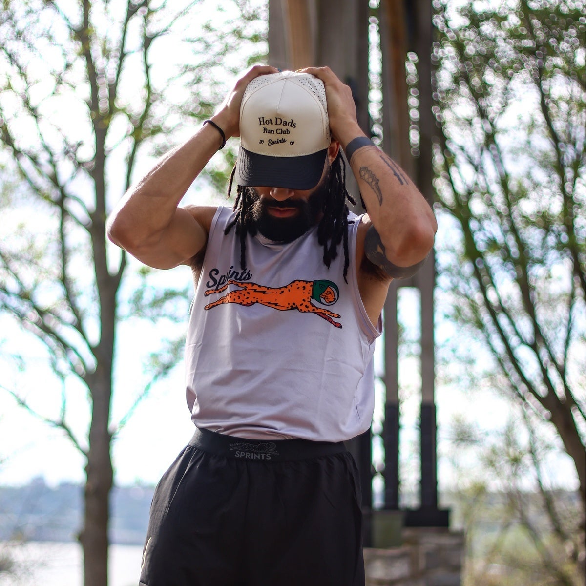 Join the Hot Dads Run Club with a structured VP hat made for miles, meetups, and everything in between. Lightweight and breathable, it keeps you comfortable when the pace picks up. The bold front embroidery brings the swagger, while the snapback fit makes it easy to wear all day. Meet Sprints: Founded in 2019, Sprints creates athletic gear that blends bold style with high-performance comfort. Designed and shipped from Cincinnati, Ohio, the brand is known for breathable fabrics, vibrant designs, and a growing community of athletes who value fun as much as function. Sprints iconic logo, Miles the Jag, is inspired by the speed and individuality of the jaguar complete with a signature helmet that nods to the brand s headwear roots.
