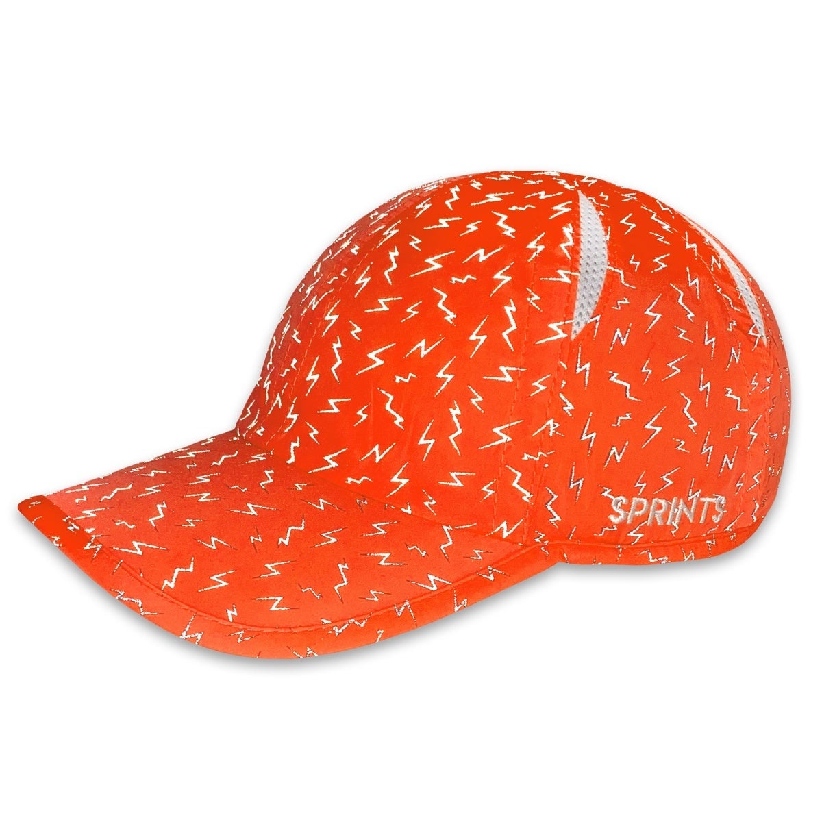 Turn up your visibility with the Neon Flash Reflective Orange OG Hat, designed for bold style from early miles to late-night laps. Its bright neon colorway and lightning-bolt pattern bring standout energy to any run, walk, or everyday outing. Built for comfort on the move, it is an easy grab-and-go option for training days and casual wear alike. When it is time to refresh, keep it looking its bestwith simple hand-wash care. Meet Sprints: Founded in 2019, Sprints creates athletic gear that blends bold style with high-performance comfort. Designed and shipped from Cincinnati, Ohio, the brand isknown for breathable fabrics, vibrant designs, and a growing community of athletes who value fun as much as function. Sprints iconic logo, Miles the Jag, is inspired by the speed and individuality o