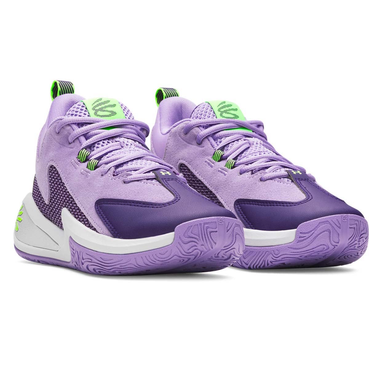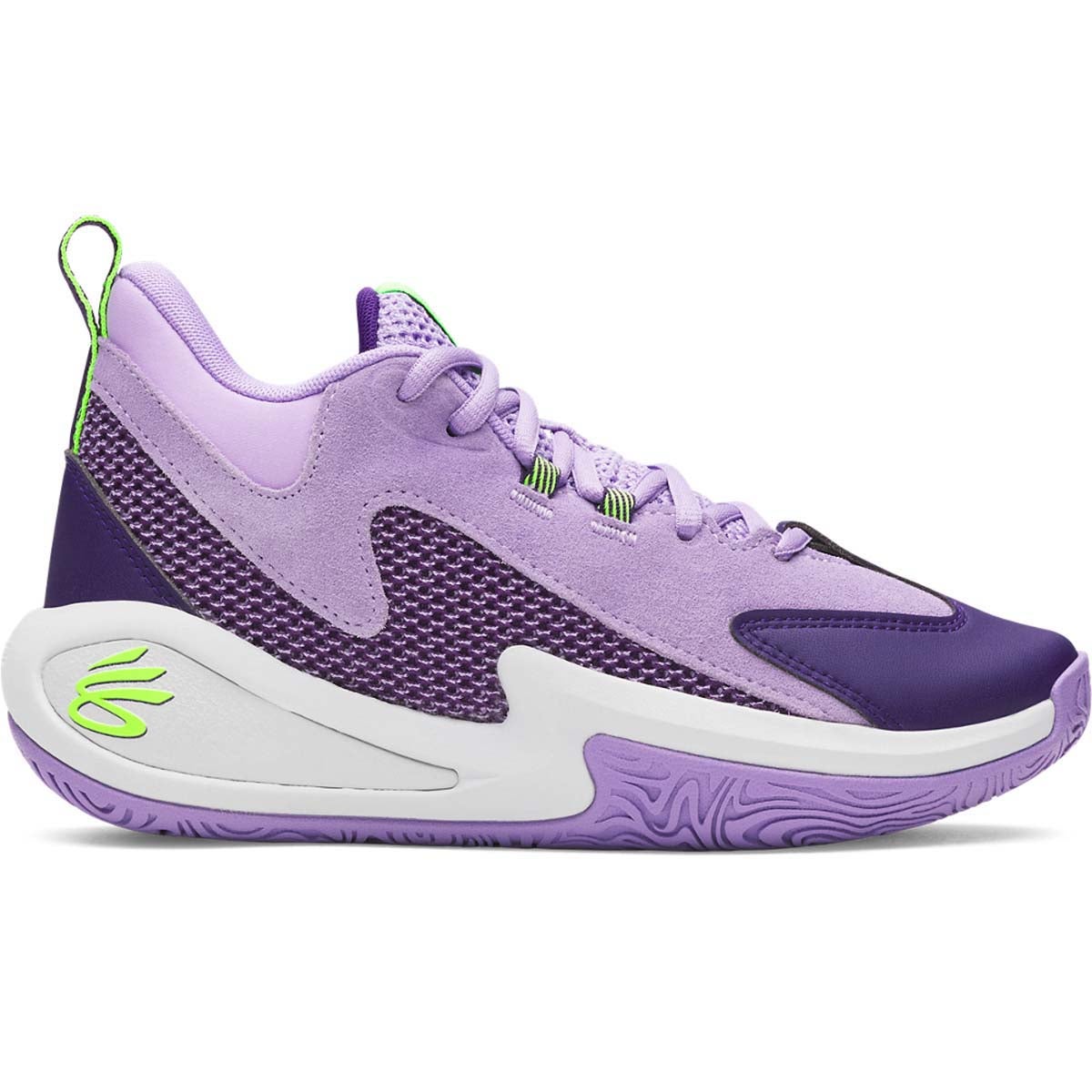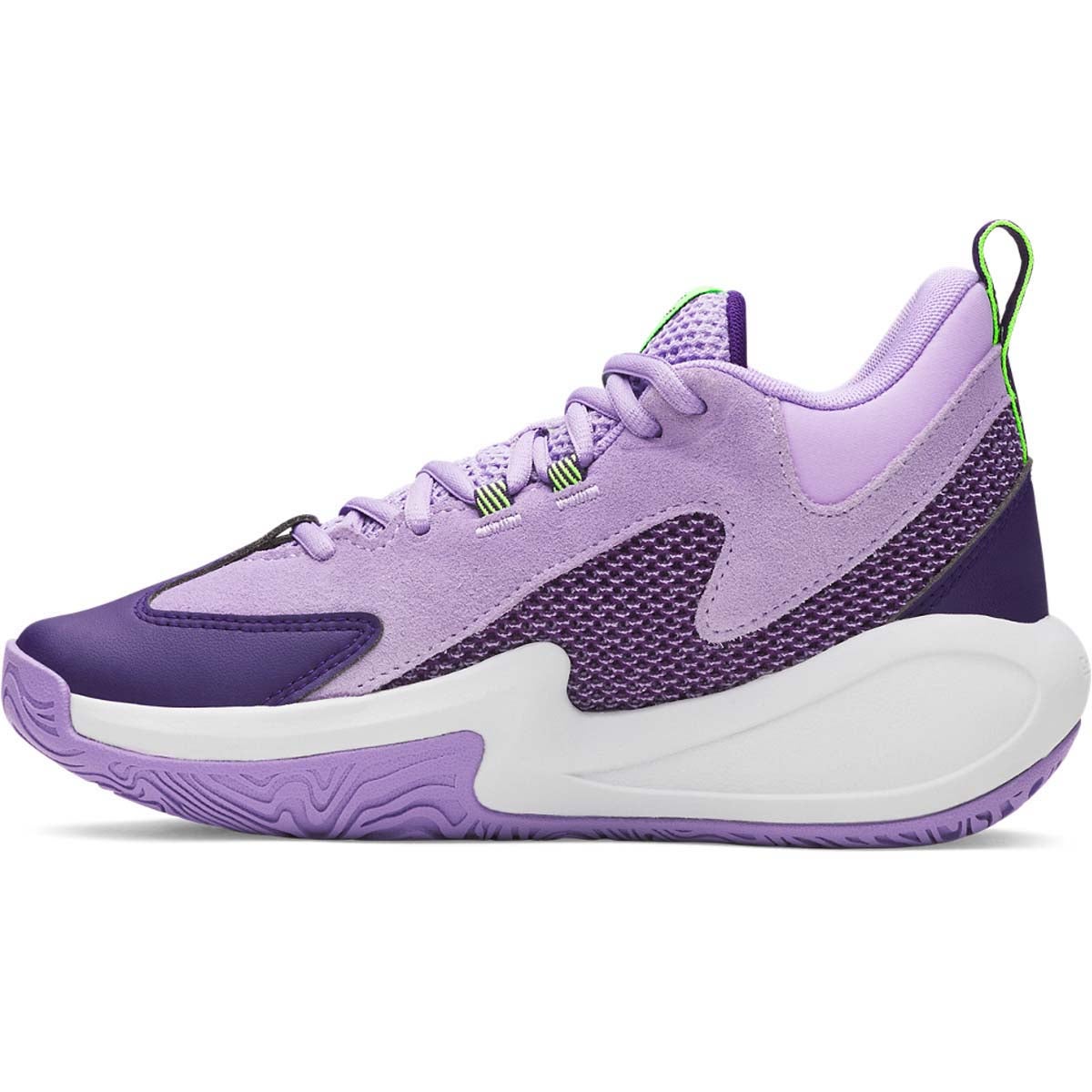 Built for all-season play, these youth basketball shoes pair durable leather overlays with breathable mesh to keep players comfortable on the court. A responsive Charged Cushioning midsole softens landings and powers quick takeoffs. An internal midfoot shank helps stabilize cuts and drives, while the anatomical rubber outsole delivers dependable traction. Finished with standard lace closure for asecure, adjustable fit.