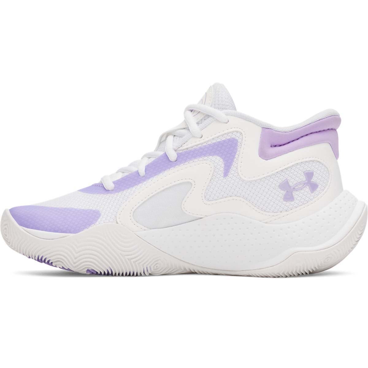 Built for all-game hustle, the UA Jet 25 delivers responsive cushioning and reliable support for young hoopers. A mixed-material upper balances breathability with durability, while a plush collar helps lock in the heel for confident cuts. Underfoot, full-length Micro G cushioning softens landings and keeps steps lively from tipoff to buzzer.