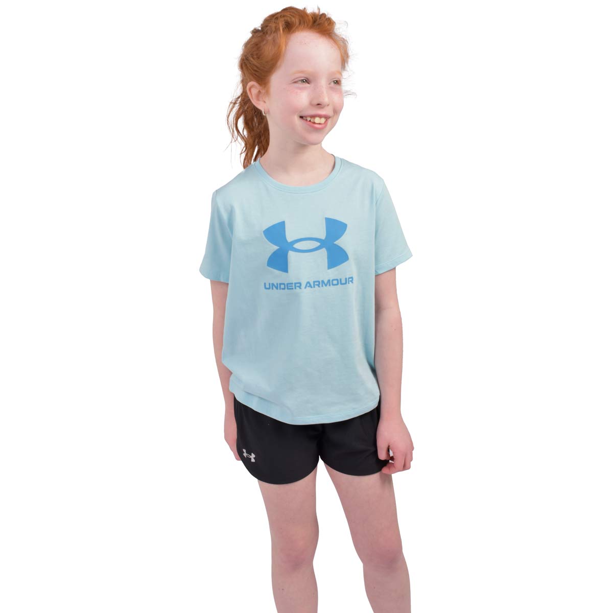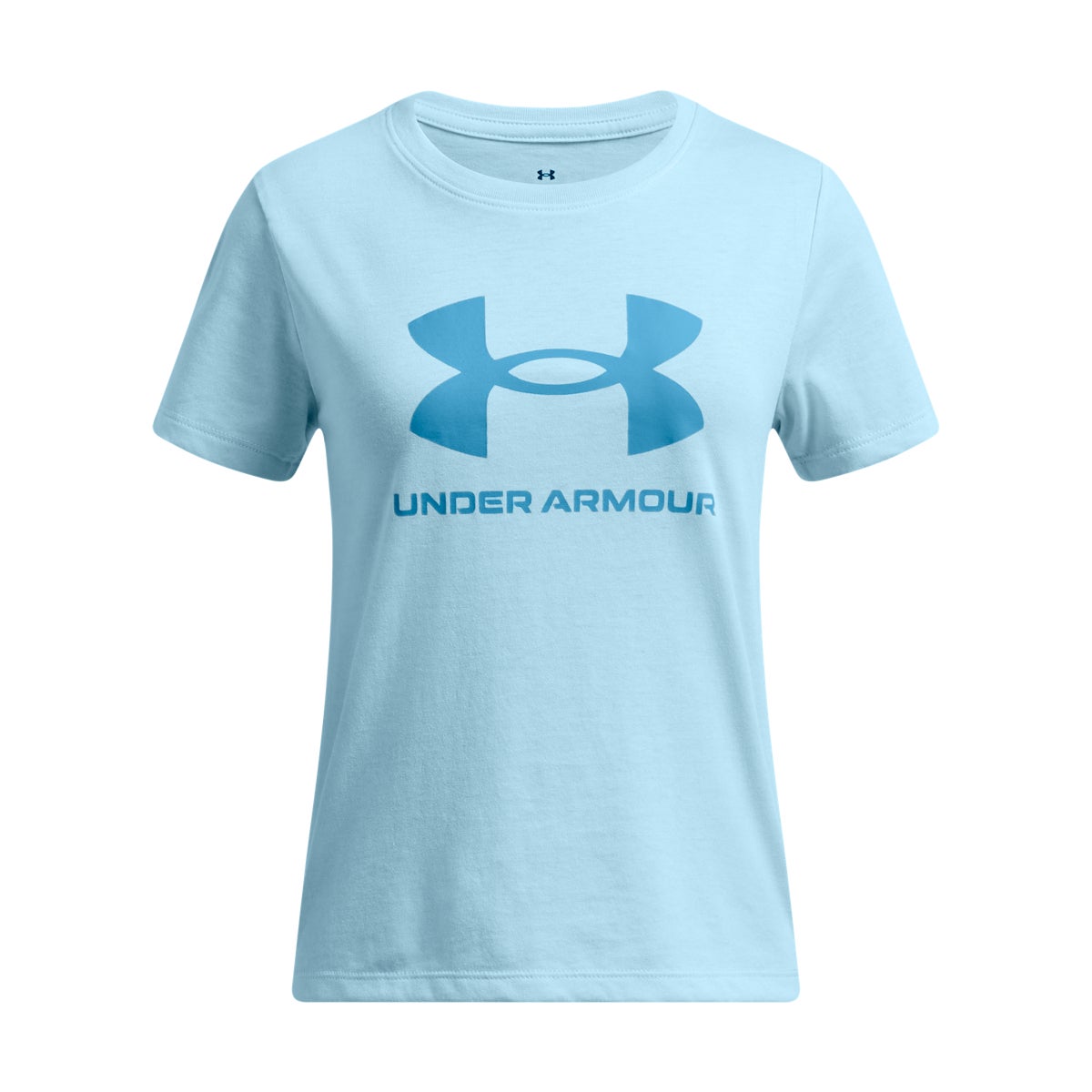 Made for everyday comfort, this girls tee pairs a classic crewneck fit with UA s bold center-front logo. The super-soft cotton-blend fabric feels light and smooth, perfect for school, practice, or play. Finished with a ribbed collar, it keeps its shape and stays comfortable all day.