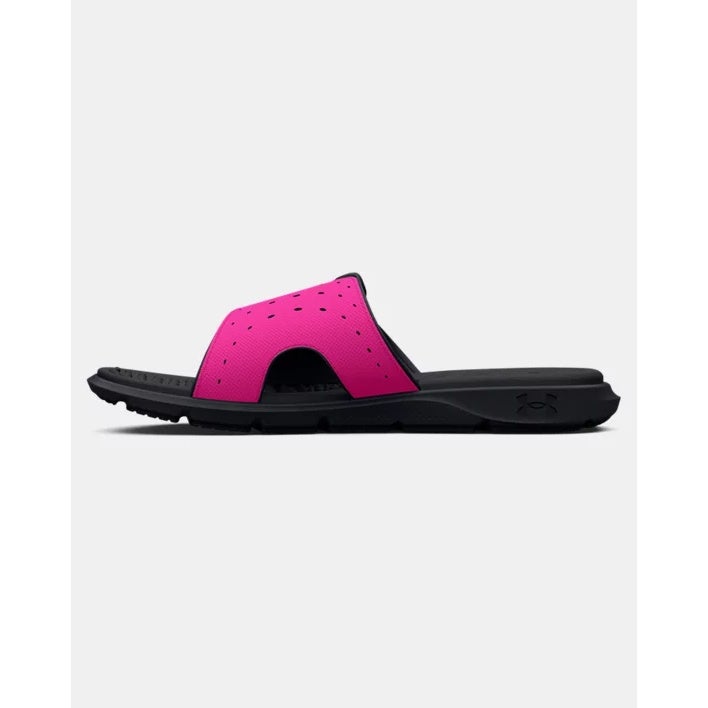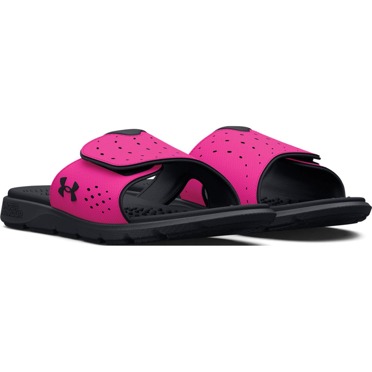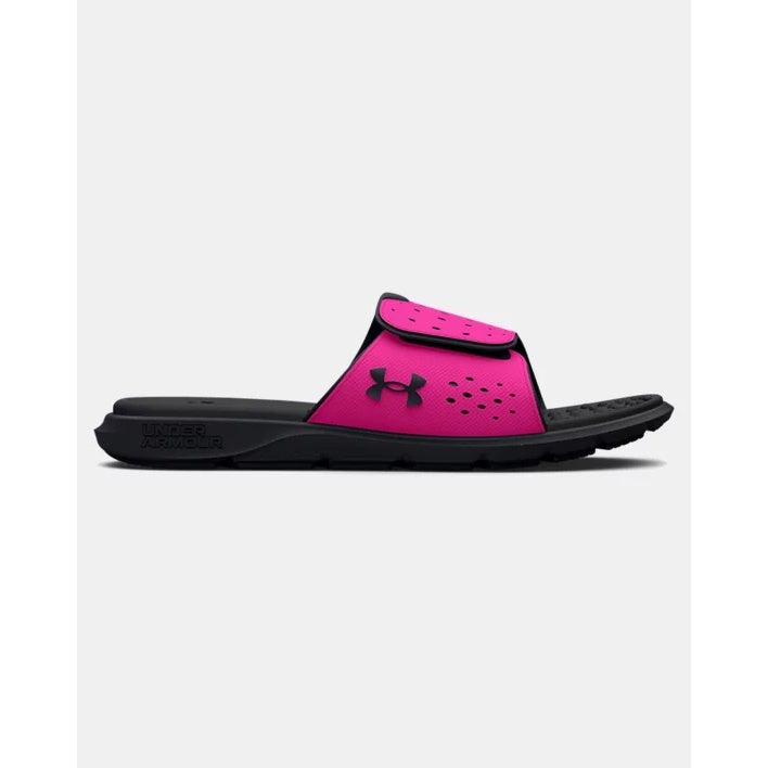 Give her easy-going comfort after practice with these cushy slides. A plush, textured foam footbed helps relieve pressure and supports tired feet, while the adjustable strap lets her dial in the fit.Perforations boost breathability, and a lightweight EVA outsole provides soft cushioning with durable traction pods.