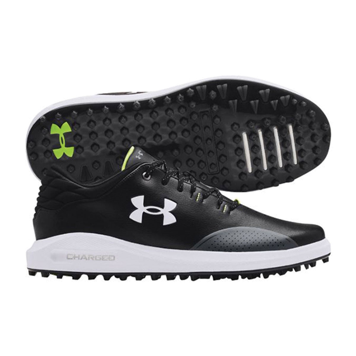 Spikeless golf shoes that keep your feet comfortable to keep you focused. The microfiber leather is light but durable, the Charged Cushioning® absorbs impact, and the Never-Wet treatment keeps you