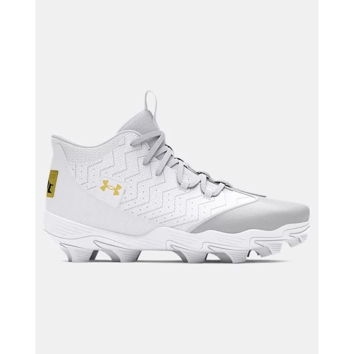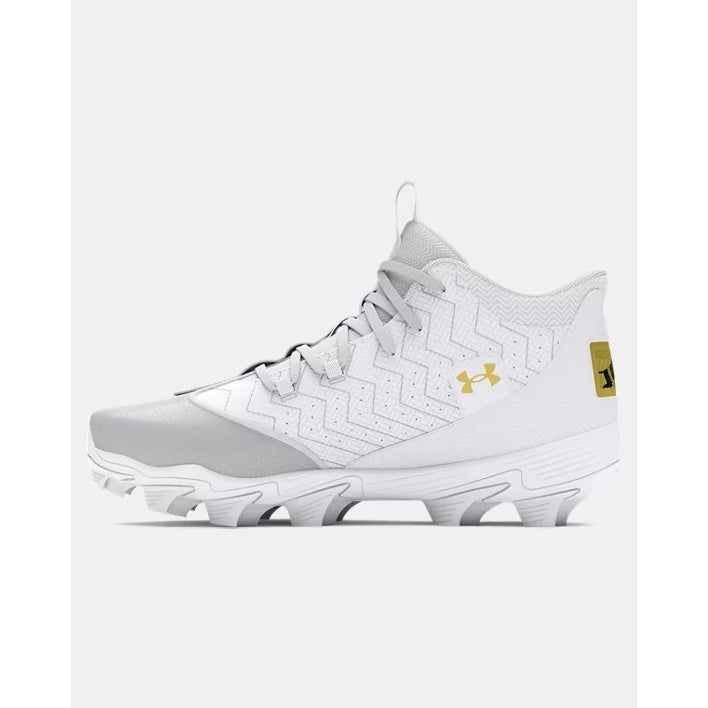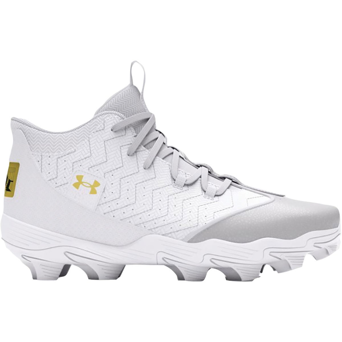 Built for game-changing speed and comfort, these cleats deliver Bryce Harper inspired style with reliable performance. A lightweight, breathable synthetic upper wraps the foot, while a full-length EVAmidsole cushions every step. The rubber molded outsole grips a variety of field surfaces for confident acceleration and quick cuts. Finished in clean white with subtle metallic accents, they re readyfor every inning.