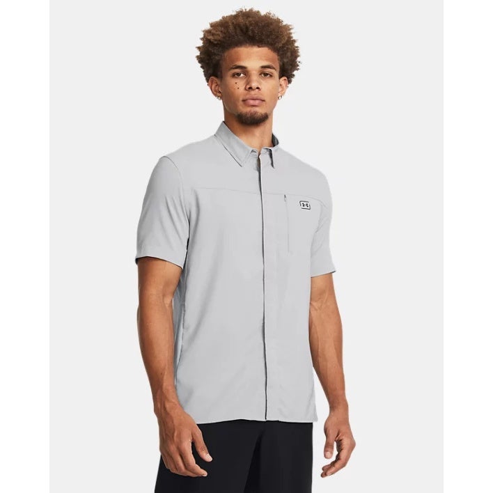 Built for long days on the water, this lightweight woven fishing shirt keeps you comfortable from launch to last cast. Stretch fabric and strategic mesh panels enhance mobility and breathability, while stain-release tech helps repel dirt and grime. A UPF 50+ rating adds serious sun protection, and a secure zip chest pocket keeps essentials close. Finished with a clean, full-length snap placket andhidden sunglasses wipe.