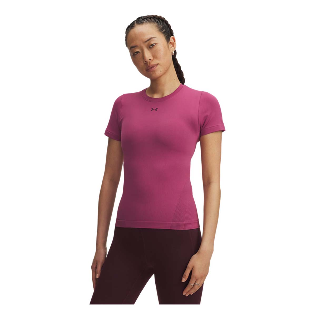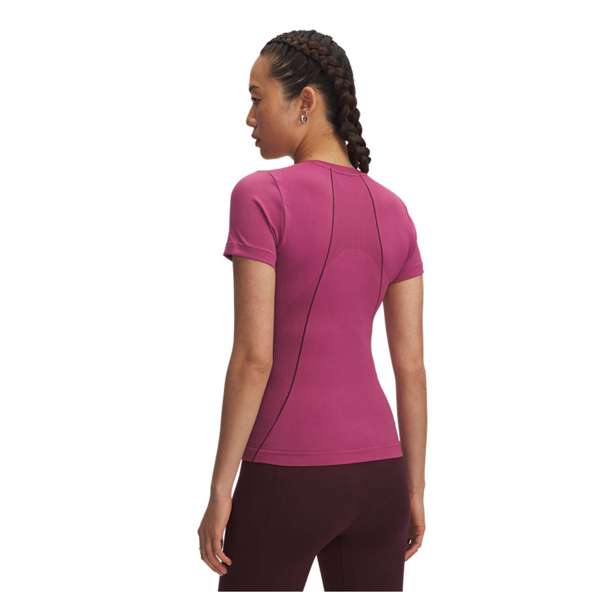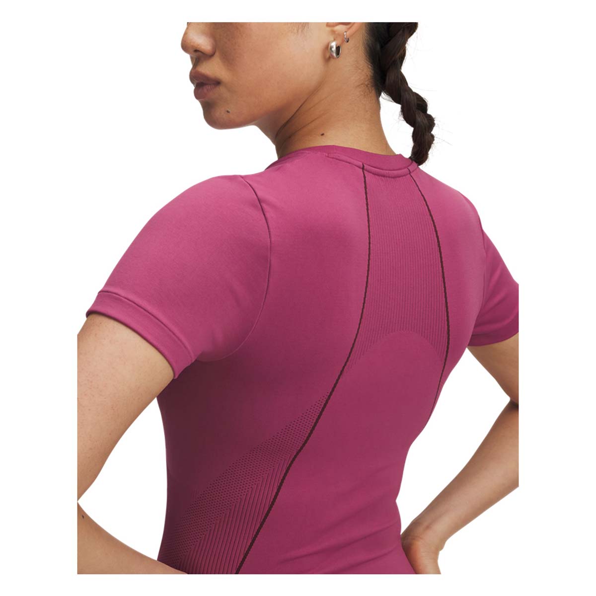 The UA Vanish Seamless shirt is designed for active women who demand comfort and performance. Featuring a super-soft, two-color knit fabric with body-mapped textures, this shirt flatters the body while providing strategic breathability. Its nearly sew-free design eliminates chafing, and the material wicks sweat and dries quickly, keeping you cool and focused during workouts.