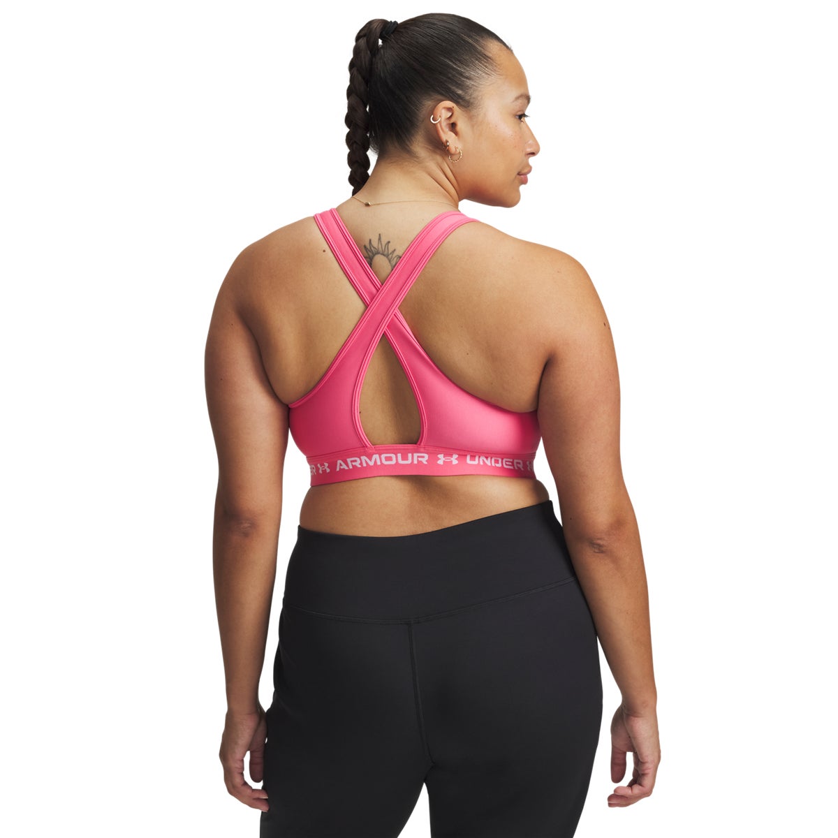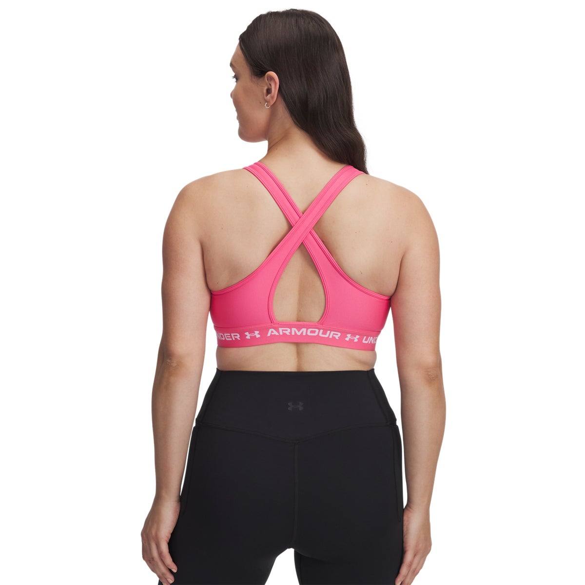 Designed for medium-impact training, this sports bra delivers strategic support with a sleek crossback design for easy on/off. Soft, quick-drying cups add structure and coverage, while breathable perforations help keep you cool. The double-layer HeatGear fabric wicks sweat and dries fast, and a smooth elastic band stays comfortable through every rep.