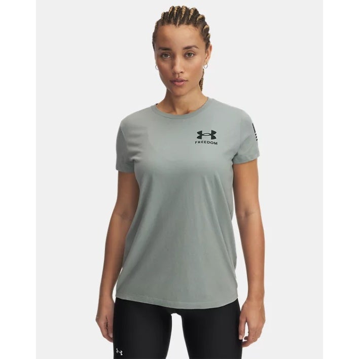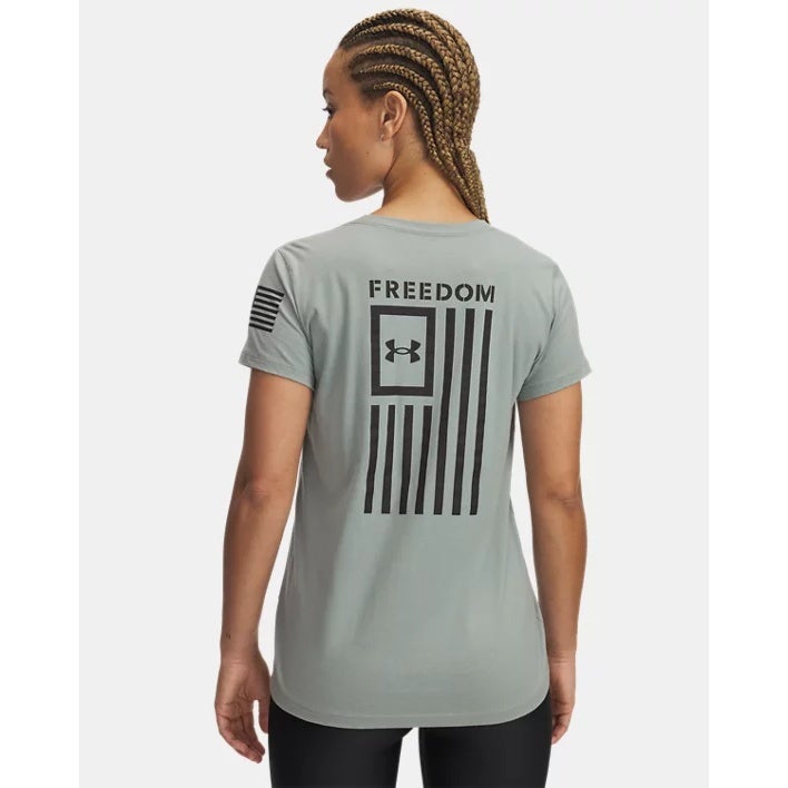 Show your support in a soft, everyday tee built for comfort. This women's graphic T-shirt pairs a lightweight cotton-blend fabric with a relaxed, easy fit. Finished with the Freedom flag graphics andribbed collar, it s an effortless grab-and-go top for training or downtime.