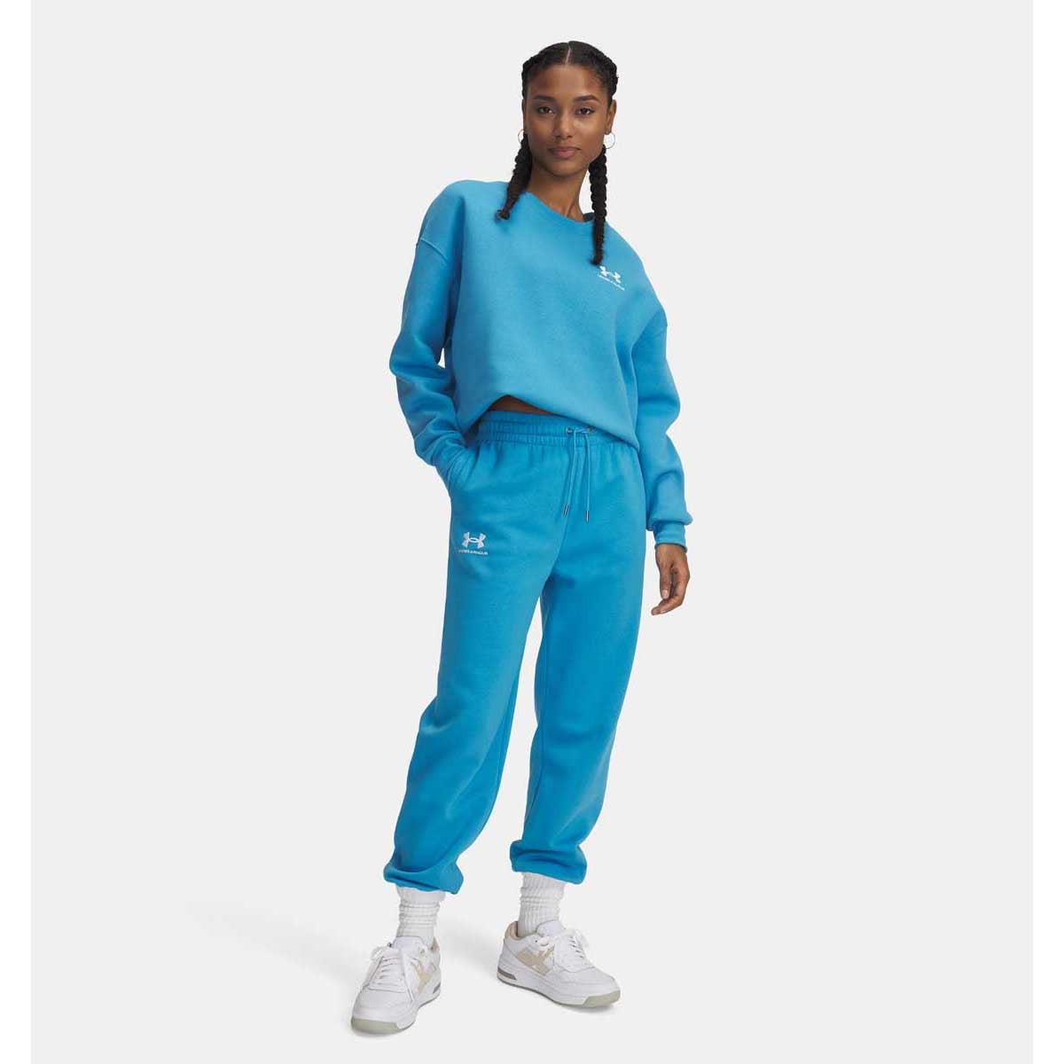Stay comfortable and stylish with the Women's UA Icon Fleece Joggers. Designed with ultra-soft, mid-weight cotton-blend fleece, these joggers feature a brushed interior for added warmth. Perfectfor casual wear or warming up before a workout, they combine functionality with a sleek design.
