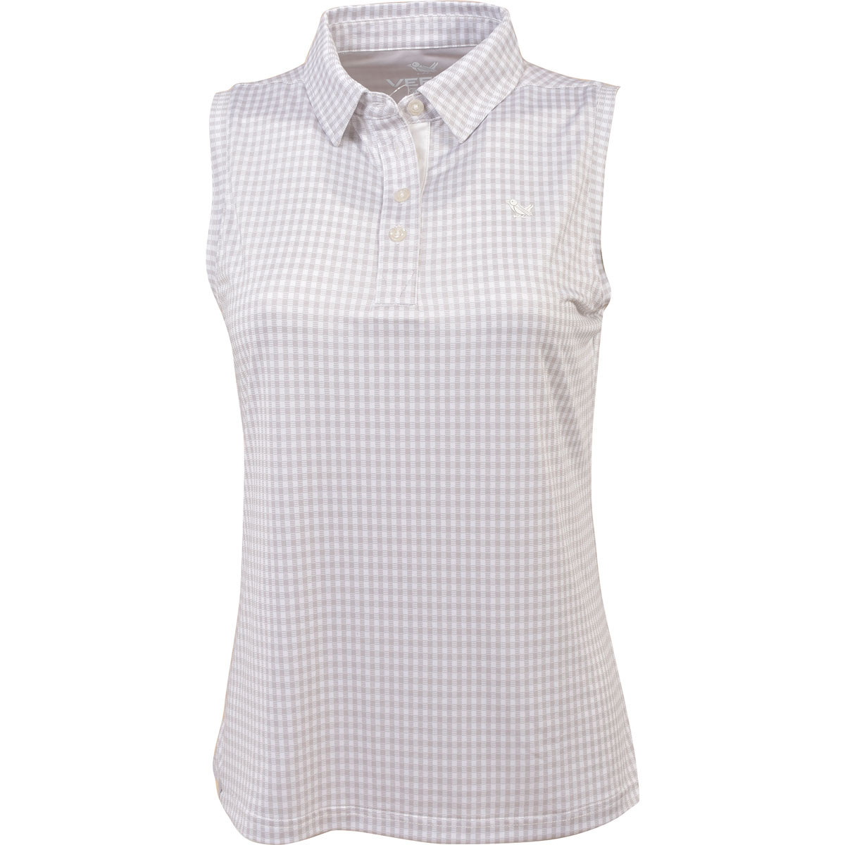 This sleeveless polo freatures a timeless gingham checkered print. Crafted for the active golfer, this polo provides optimal breathability without sacrificing style.