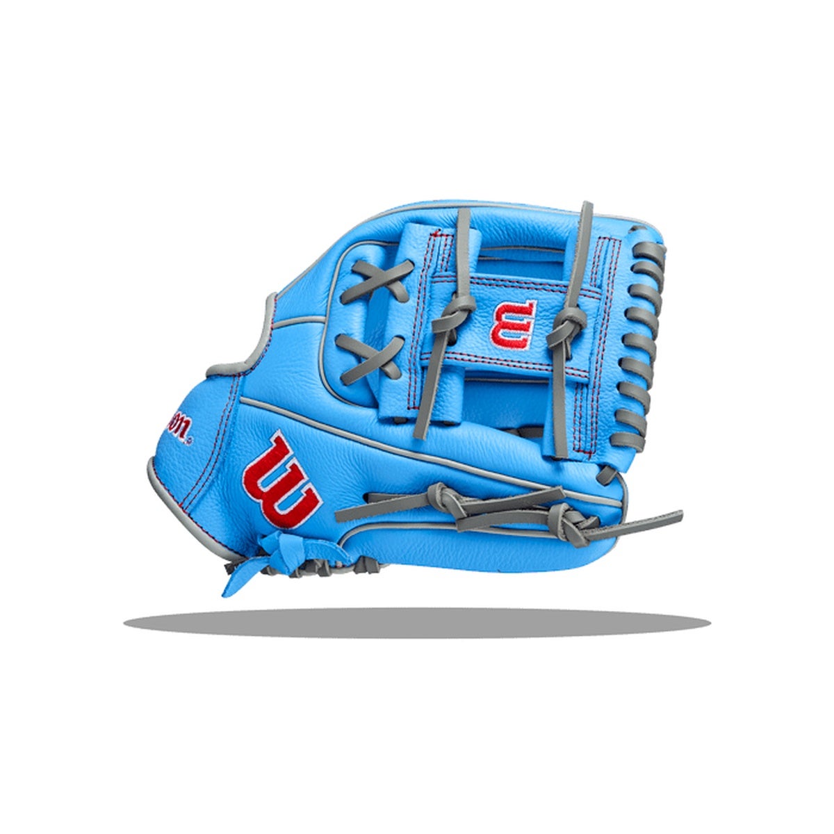 Built for rising ballplayers, this lightweight all-leather A500 delivers a confident fit and easy control at 11 inches. Youth-specific finger stalls and a Quick-Fit elastic wrist create a secure, comfortable feel right out of the box. Durable top-grain leather and Wilson s dual welting help the glove keep its shape as skills progress. A bold Cool Blue, Gray, and Red look stands out on any field.