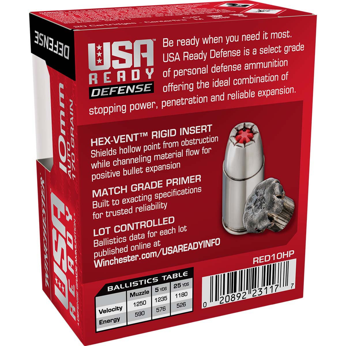 Winchester 10mm Auto 170-Grain USA Ready Defense Handgun Ammunition (20 Rounds)