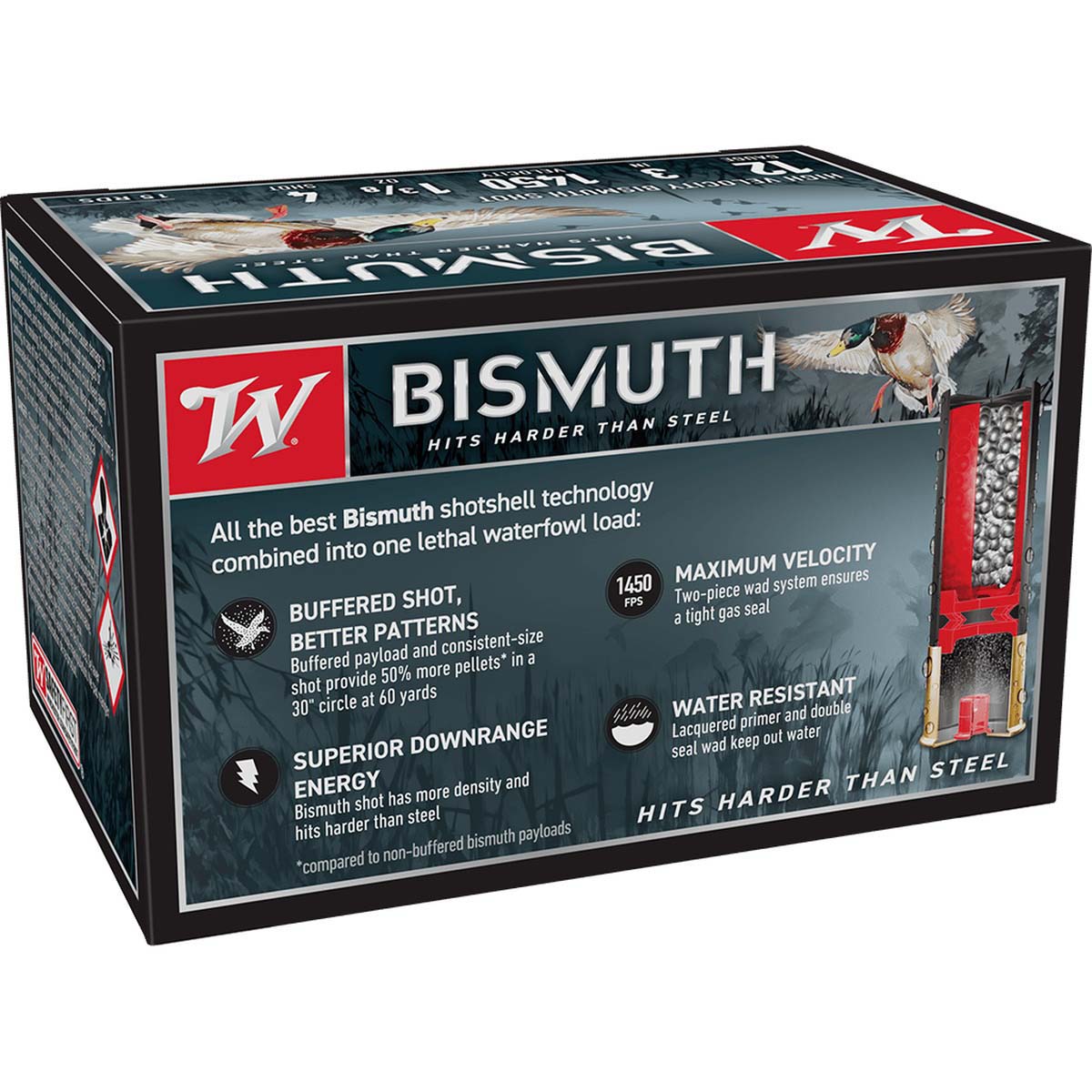 - Precision bismuth shot; hits harder than steel