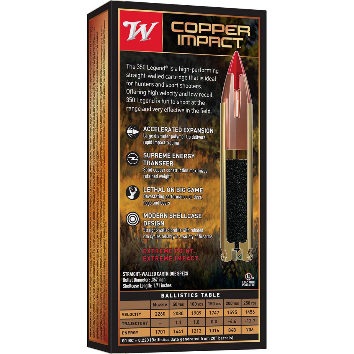 Engineered for hunters who demand all-copper performance, these 350 Legend rounds deliver fast expansion and dependable energy transfer. The solid copper polymer-tipped bullet is optimized for straight-walled cartridges, pairing high velocity with low recoil for confident shots in the field. Built for big-game effectiveness and reliable cycling across a variety of firearms. Made in the USA.