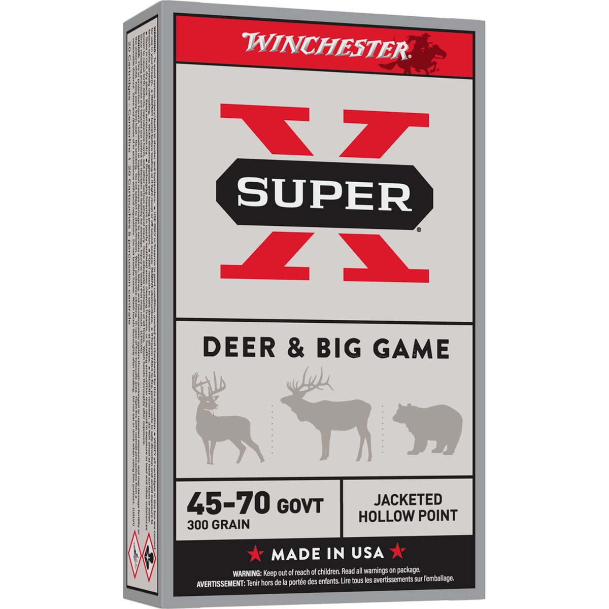 Built for deer and big game, this 45-70 Government load pairs a 300-grain jacketed hollow point with trusted Super-X performance. It s designed for consistent expansion and dependable accuracy on target. Made in the USA and suitable for classic lever-action hunting rifles, it delivers reliable terminal impact in the field.
