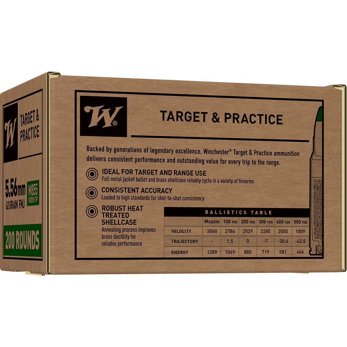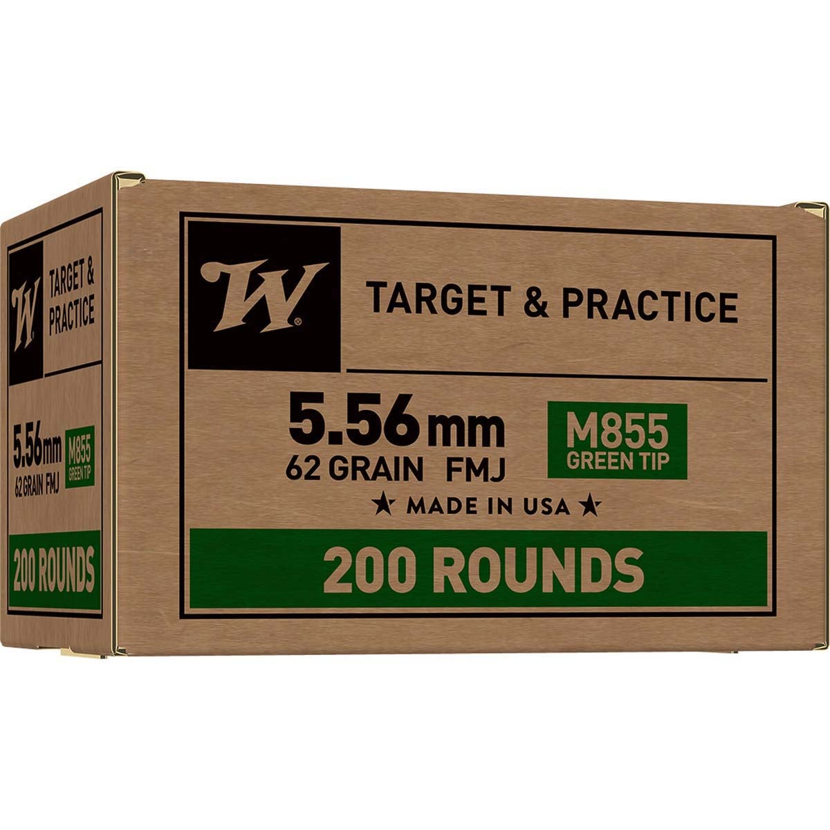 Winchester 5.56mm 62-Grain M855 Green Tip Target & Practice Ammunition (200 Rounds)