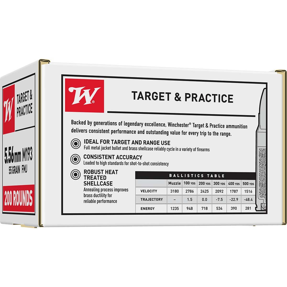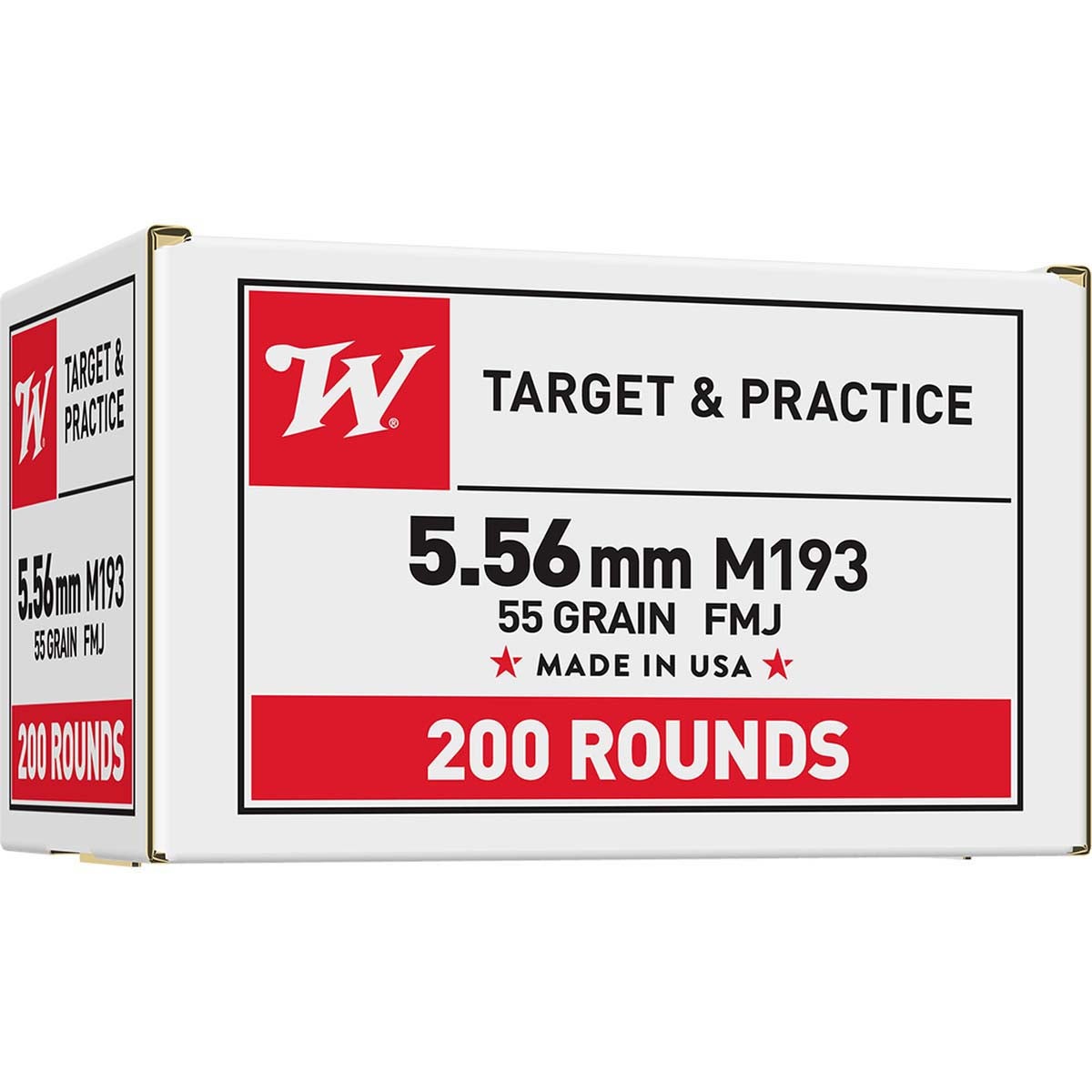 Winchester 5.56mm M193 55-Grain FMJ Target & Practice Rifle Ammunition (200 Rounds)