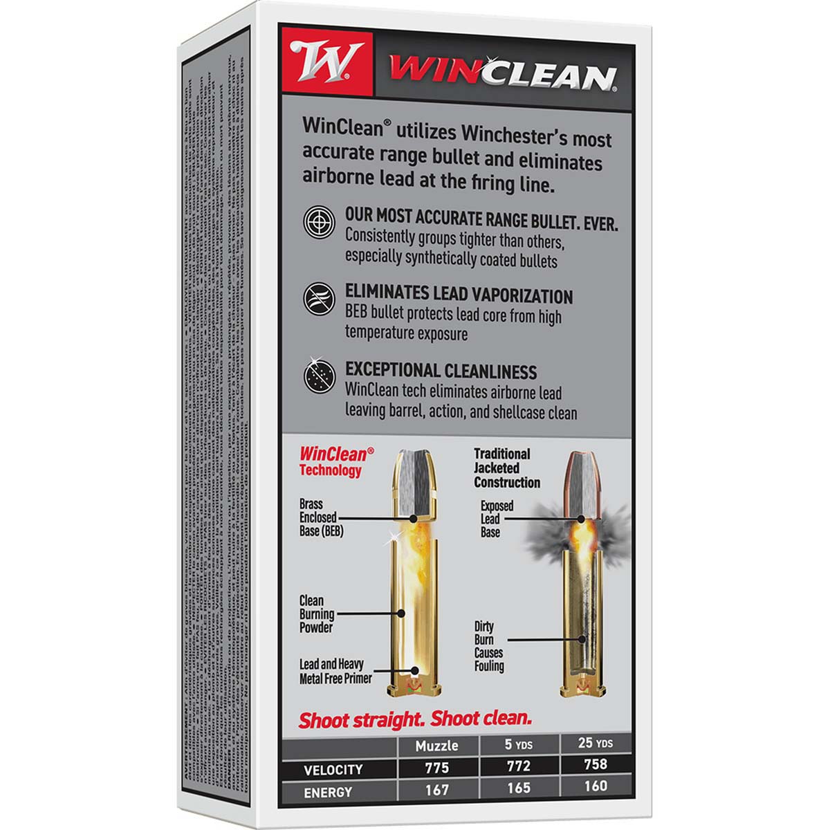 Built for cleaner practice sessions, this WinClean .38 Special load pairs Winchester s accurate range bullet with technology that reduces airborne lead at the firing line. The Brass Enclosed Base projectile and lead-free, heavy-metal-free primer help keep barrels, actions, and shooting areas cleaner. Consistent performance and smooth cycling make it a reliable choice for indoor or outdoor range training.